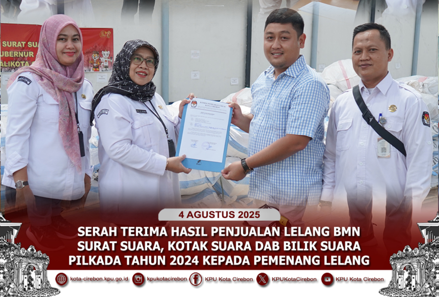 CIREBON – Komisi Pemilihan Umum (KPU) Kota Cirebon telah menyelesaikan proses lelang barang milik negara (BMN) berupa surat suara, kotak suara, dan bilik suara yang digunakan pada Pemilihan Gubernur dan Wakil Gubernur serta Wali Kota dan Wakil Wali Kota Tahun 2024. Serah terima hasil penjualan lelang secara resmi dilakukan kepada pemenang lelang pada Senin, 4 Agustus 2025. Penyerahan hasil lelang ini merupakan bagian dari prosedur administrasi yang harus dijalankan KPU setelah selesainya tahapan pemilu. Logistik pemilu yang sudah tidak terpakai, seperti surat suara, kotak suara, dan bilik suara, dikelola sesuai peraturan yang berlaku untuk menghindari penumpukan barang dan mengoptimalkan aset negara. Sekretaris KPU Kota Cirebon, Ana Siti Hasanah, menjelaskan bahwa proses lelang ini dilaksanakan secara transparan dan sesuai dengan ketentuan yang ditetapkan oleh Kantor Pelayanan Kekayaan Negara dan Lelang (KPKNL). “Semua proses, mulai dari penetapan nilai hingga pelaksanaan lelang, kami lakukan dengan koordinasi bersama pihak terkait untuk memastikan akuntabilitas,” ujarnya. Hasil dari penjualan lelang ini selanjutnya akan disetorkan ke kas negara sebagai pendapatan non-pajak. KPU Kota Cirebon berkomitmen untuk terus menjalankan tugas dan fungsinya secara profesional, termasuk dalam pengelolaan aset dan logistik pemilu, demi terciptanya tata kelola pemerintahan yang baik. ....