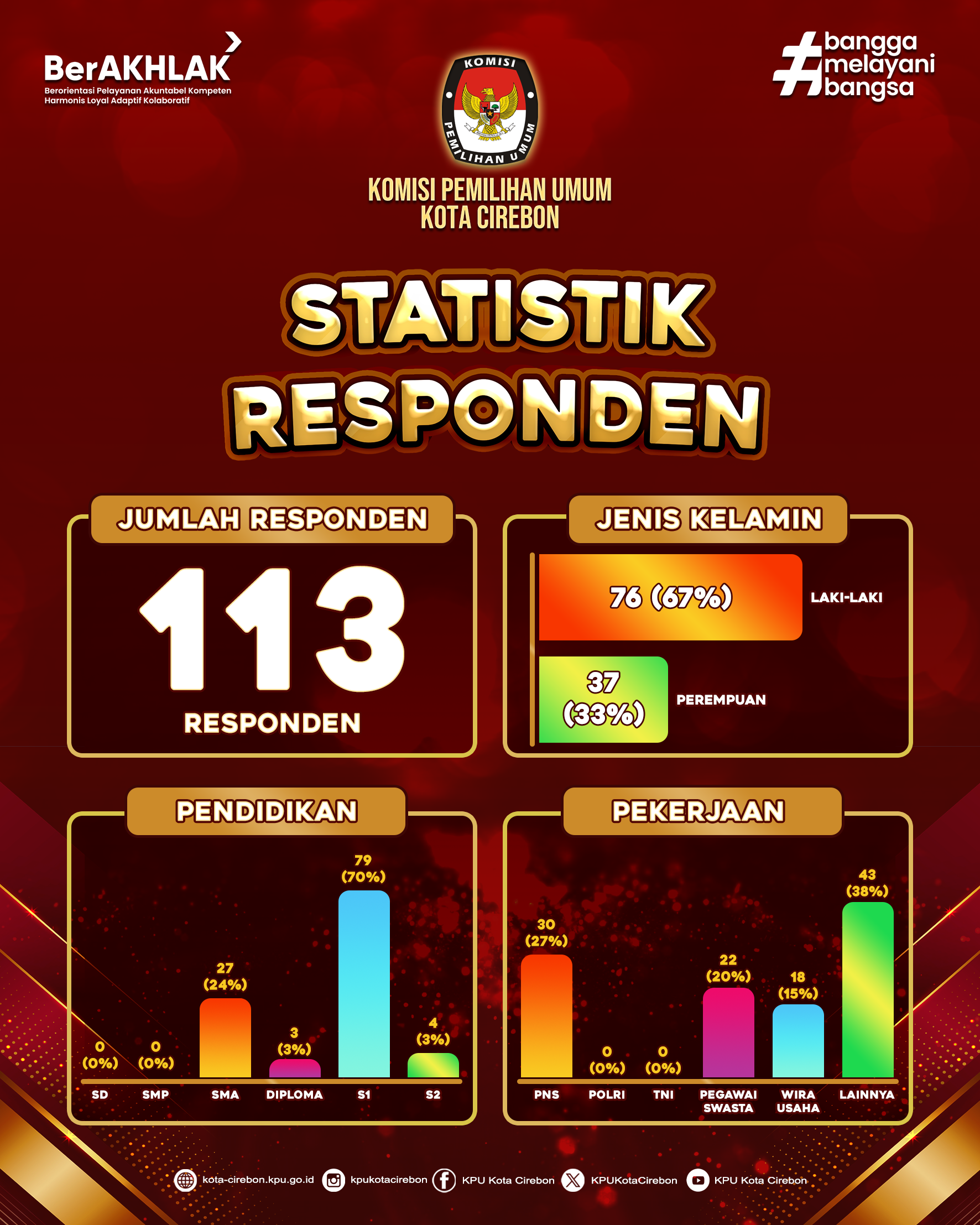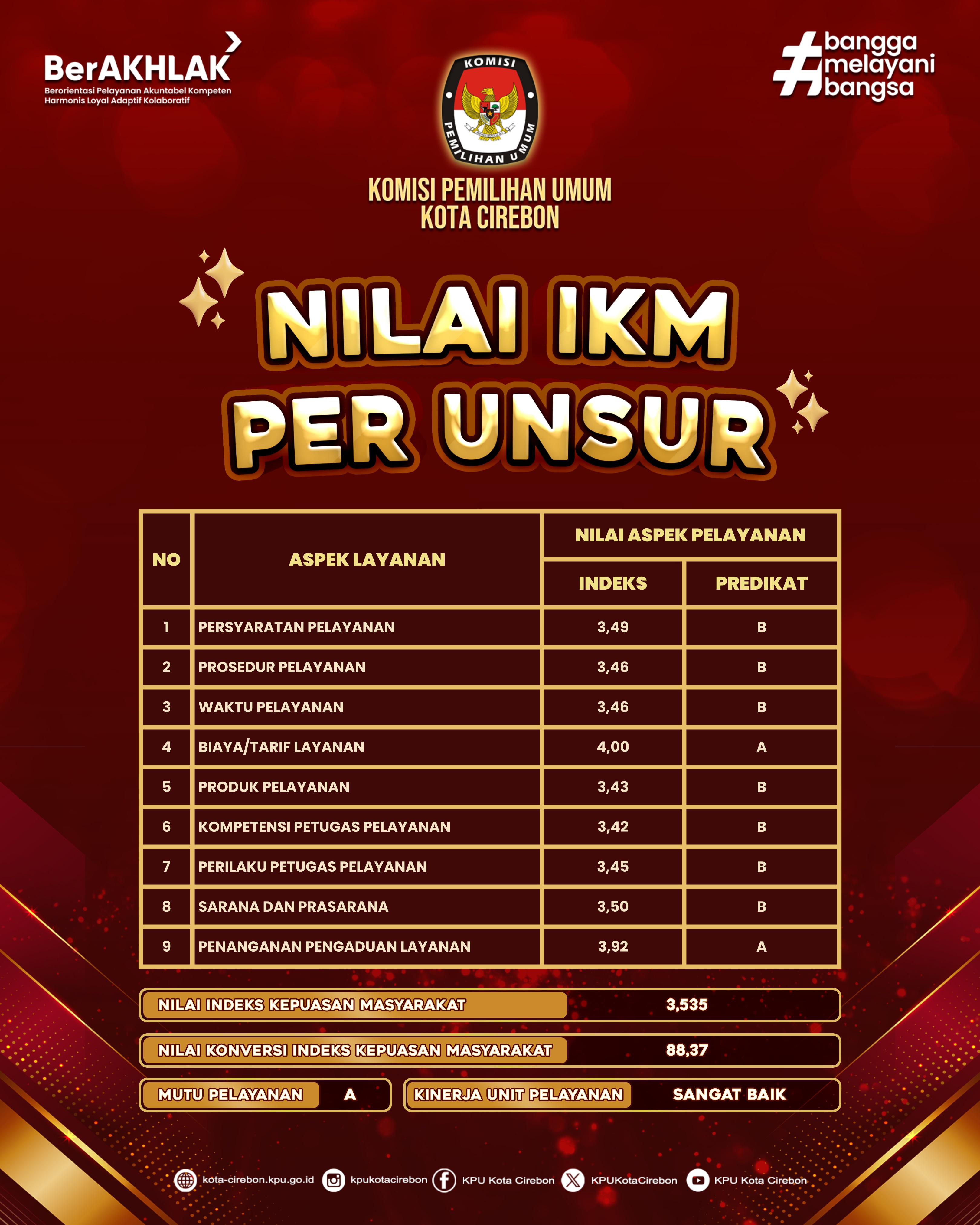 KPU Kota Cirebon meraih predikat A (Sangat Baik) dalam indeks kepuasan masyarakat dengan nilai 88,37.