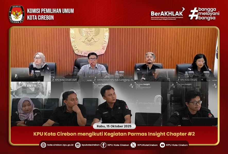 CIREBON, 15 Oktober 2025 – Komisi Pemilihan Umum (KPU) Kota Cirebon mengikuti Kegiatan Parmas Insight Chapter #2 yang diselenggarakan oleh KPU Provinsi Jawa Barat pada Rabu (15/10/2025). Kegiatan ini kembali hadir sebagai ruang refleksi dan inovasi bagi penyelenggara Pemilu dalam memperkuat Pendidikan Pemilih Berkelanjutan di luar masa tahapan.