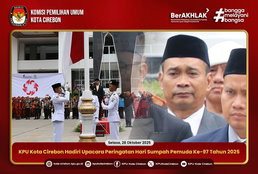 Upacara turut dihadiri oleh jajaran Forkopimda Kota Cirebon, organisasi kepemudaan, serta berbagai unsur masyarakat, mencerminkan semangat persatuan lintas generasi dan lembaga. Kehadiran KPU Kota Cirebon menjadi wujud nyata komitmen dalam mendorong peran pemuda sebagai agen demokrasi, sekaligus memperkuat partisipasi mereka dalam menyukseskan Pemilu yang jujur, adil, dan berintegritas.