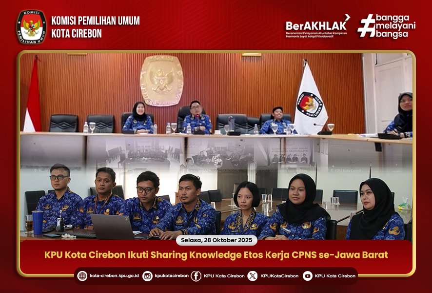 CIREBON – Komisi Pemilihan Umum (KPU) Kota Cirebon mengikuti Kegiatan Sharing Knowledge Etos Kerja CPNS di Lingkungan Sekretariat KPU Provinsi dan Kabupaten/Kota se-Jawa Barat, yang diselenggarakan secara daring pada Selasa (28/10/2025).
