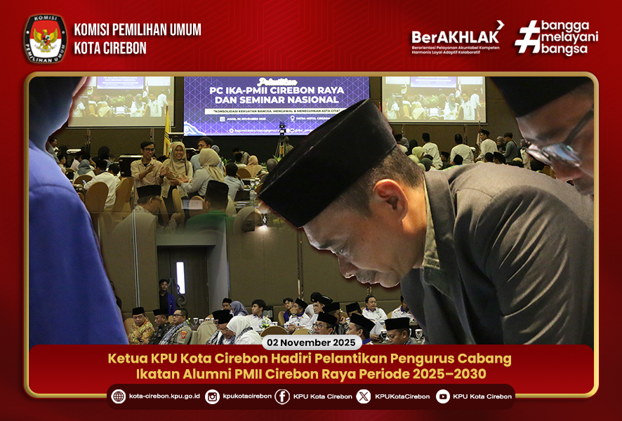 CIREBON, 2 November 2025 – Ketua Komisi Pemilihan Umum (KPU) Kota Cirebon, Mardeko, menghadiri Pelantikan Pengurus Cabang Ikatan Alumni Pergerakan Mahasiswa Islam Indonesia (IKA PMII) Cirebon Raya Periode 2025–2030, yang diselenggarakan di Patra Cirebon Hotel, pada Minggu (2/11/2025).