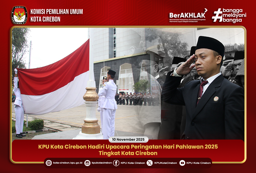 CIREBON, 10 November 2025 – Anggota Komisi Pemilihan Umum (KPU) Kota Cirebon, Hasan Basri, menghadiri Upacara Peringatan Hari Pahlawan Tahun 2025 Tingkat Kota Cirebon yang digelar di Halaman Balai Kota Cirebon, pada Senin (10/11/2025).