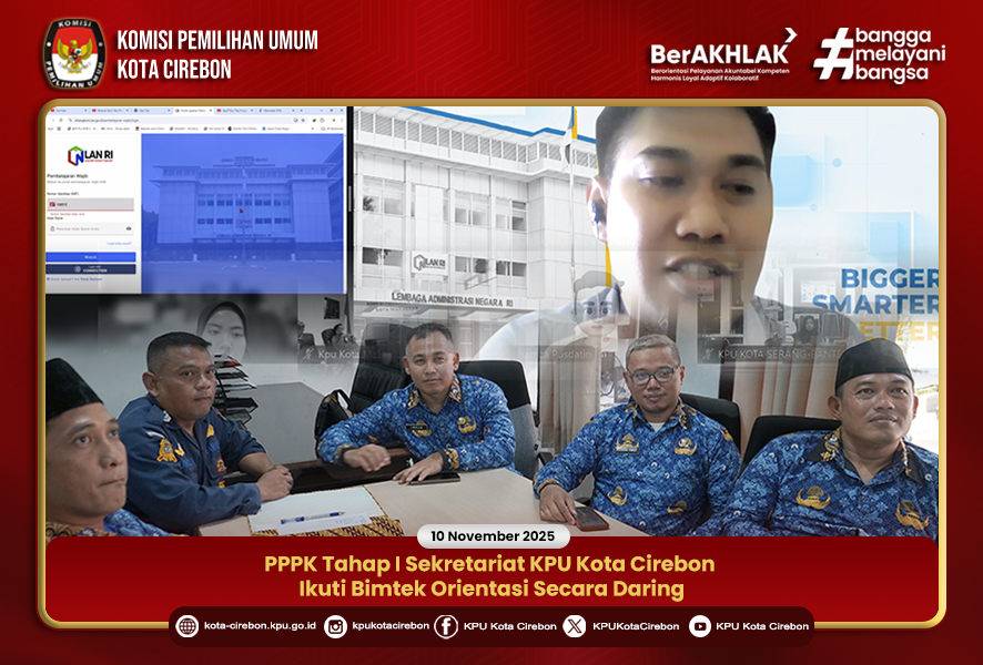CIREBON, 10 November 2025 – Pegawai Pemerintah dengan Perjanjian Kerja (PPPK) di lingkungan Sekretariat KPU Kota Cirebon mengikuti Bimbingan Teknis (Bimtek) Orientasi PPPK Formasi Tahun 2024 Periode I, yang diselenggarakan secara daring pada Senin (10/11/2025).