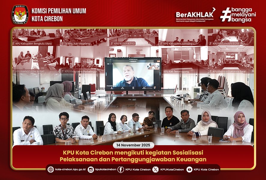 CIREBON – Komisi Pemilihan Umum (KPU) Kota Cirebon mengikuti kegiatan Sosialisasi Pelaksanaan dan Pertanggungjawaban Keuangan yang diselenggarakan secara daring oleh Sekretariat Jenderal KPU RI pada Jumat (14/11/2025). Kegiatan ini diikuti oleh seluruh satuan kerja di lingkungan Setjen KPU, KPU Provinsi, dan KPU Kabupaten/Kota sebagai upaya meningkatkan pemahaman terkait tata kelola anggaran yang efektif, akuntabel, dan sesuai regulasi.