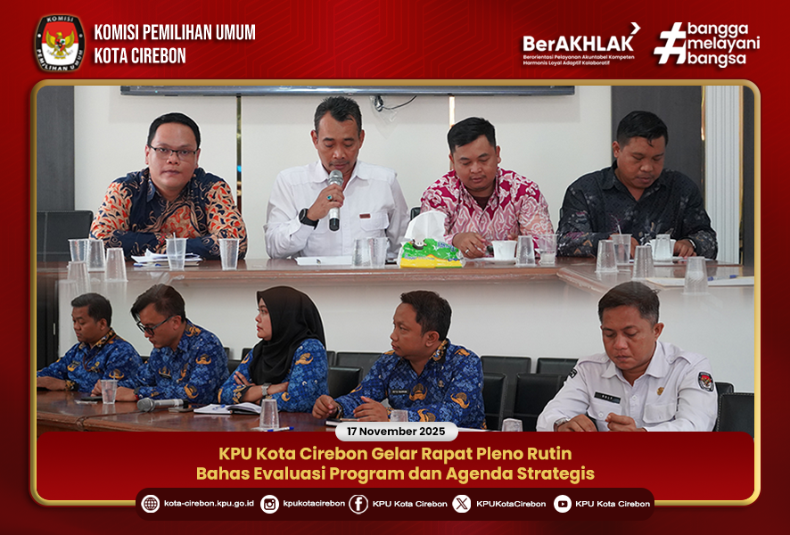 Melalui rapat pleno ini, KPU Kota Cirebon menegaskan komitmennya untuk terus meningkatkan kualitas penyelenggaraan pemilu di Kota Cirebon, baik dari sisi administrasi, layanan publik, maupun penguatan partisipasi masyarakat. Koordinasi yang solid menjadi kunci utama dalam memastikan setiap tahapan dan program KPU berjalan profesional, transparan, dan berintegritas.