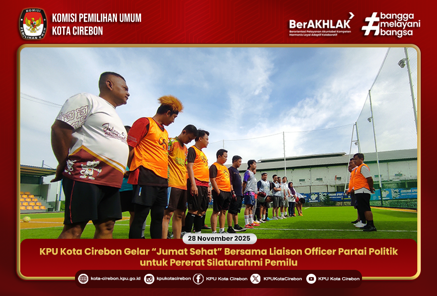 CIREBON – Komisi Pemilihan Umum (KPU) Kota Cirebon melaksanakan kegiatan “Jumat Sehat” sebagai upaya menjaga kesehatan sekaligus memperkuat hubungan kemitraan dengan para pemangku kepentingan Pemilu.