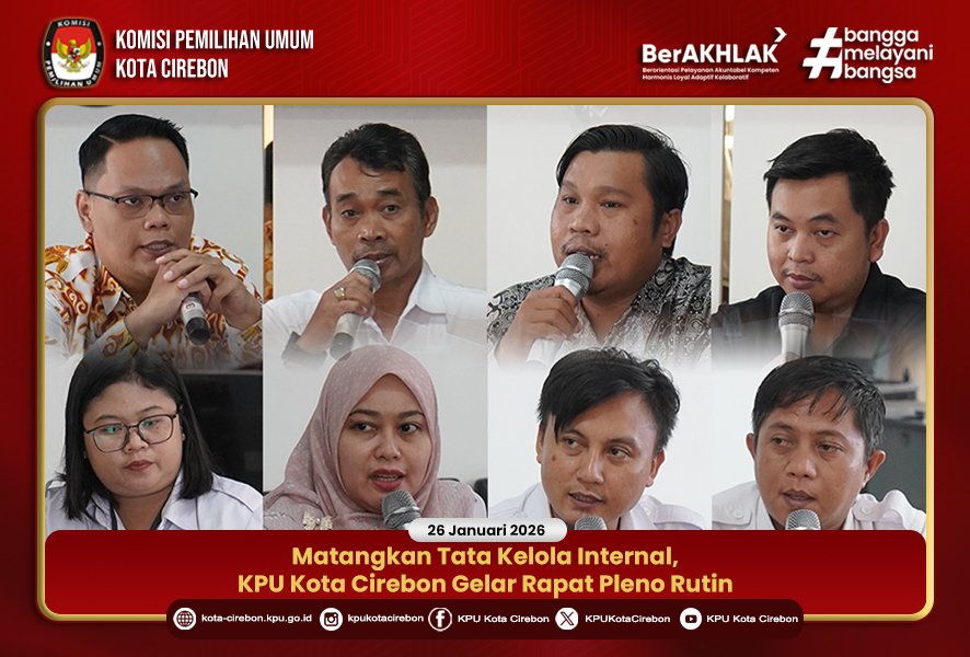 Melalui konsistensi pelaksanaan Rapat Pleno Rutin, KPU Kota Cirebon menegaskan komitmennya dalam penguatan kelembagaan. Sinergi internal yang solid dan manajemen kerja yang terarah dipandang sebagai fondasi utama dalam mewujudkan penyelenggara Pemilu yang profesional, akuntabel, dan berintegritas dalam melayani masyarakat.