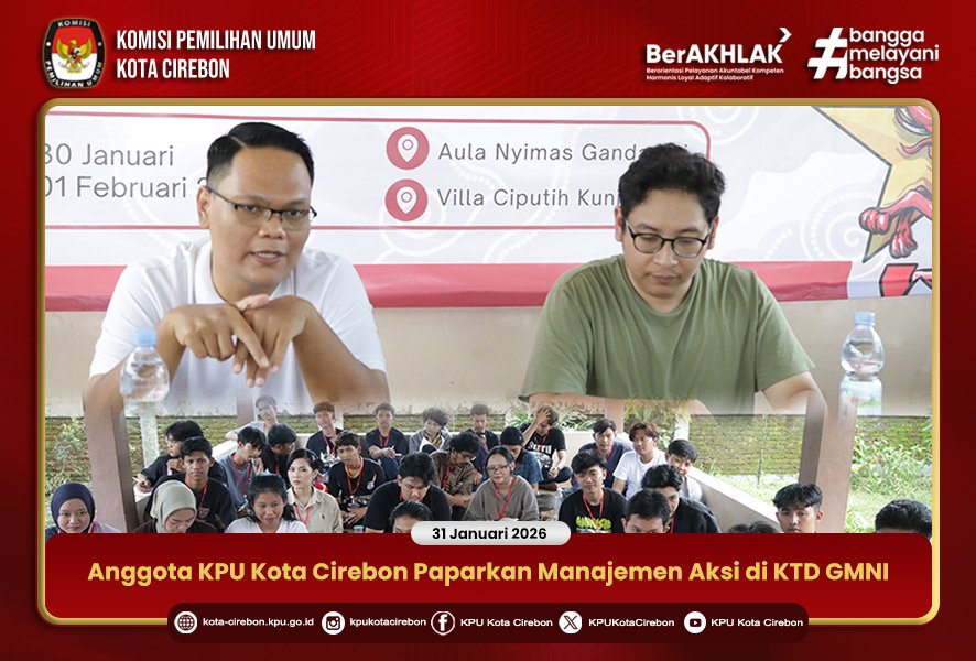 KOTA CIREBON – Anggota Komisi Pemilihan Umum (KPU) Kota Cirebon, Yogi Maulana Malik, hadir sebagai narasumber dalam kegiatan Kaderisasi Tingkat Dasar (KTD) yang diselenggarakan oleh Dewan Pimpinan Cabang (DPC) Gerakan Mahasiswa Nasional Indonesia (GMNI) Cirebon, Sabtu (31/1/2026).