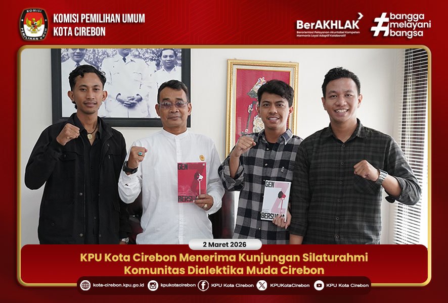 KOTA CIREBON - KPU Kota Cirebon menerima kunjungan silaturahmi dari Komunitas Dialektika Muda Cirebon dalam rangka audiensi serta penyampaian karya tulis bertajuk “Generasi Z Bersuara”, Senin(2/3/2026).
