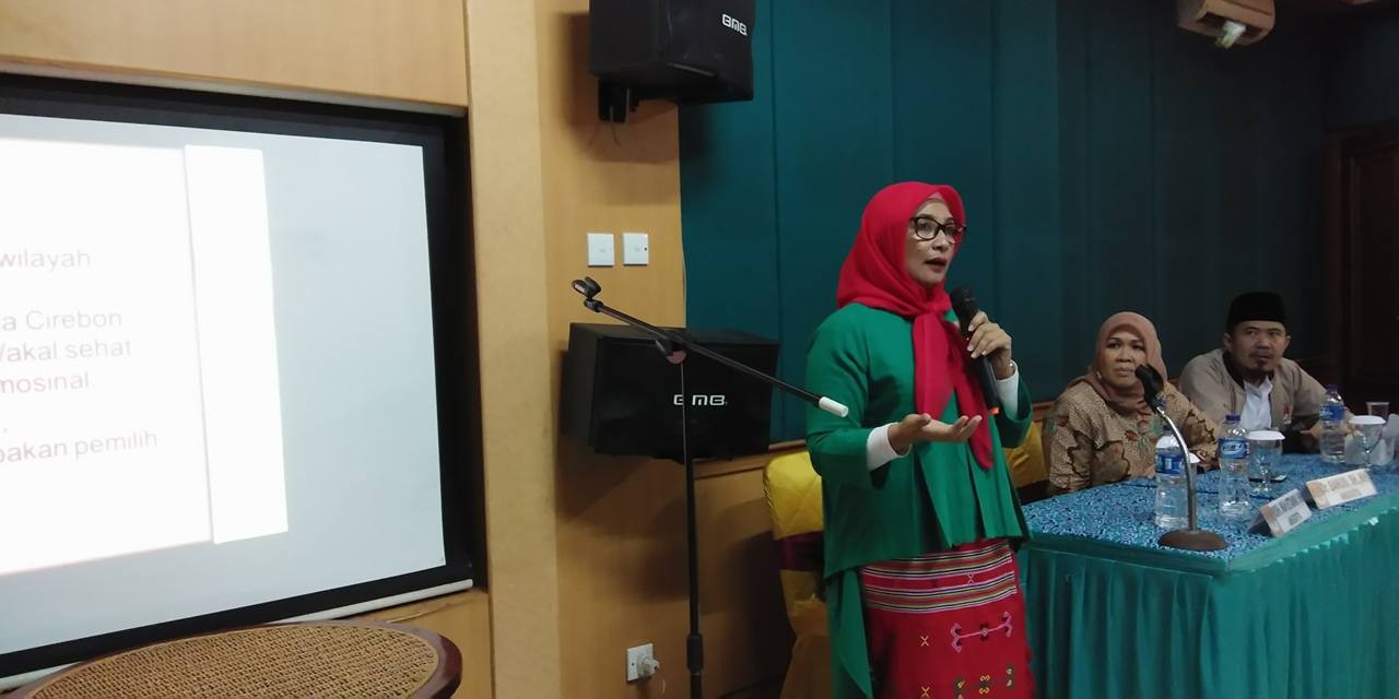 Cirebon, kota-cirebon.kpu.go.id - Penyampaian materi Bimbingan Teknis Agen Sosialisasi Pemilihan Gubernur dan Wakil Gubernur Jawa Barat serta Wali Kota dan Wakil Wali Kota Cirebon Tahun 2018, yang disampaikan oleh Dr. Evie Ariadne Shinta Dewi, M. Pd. (Media Center)