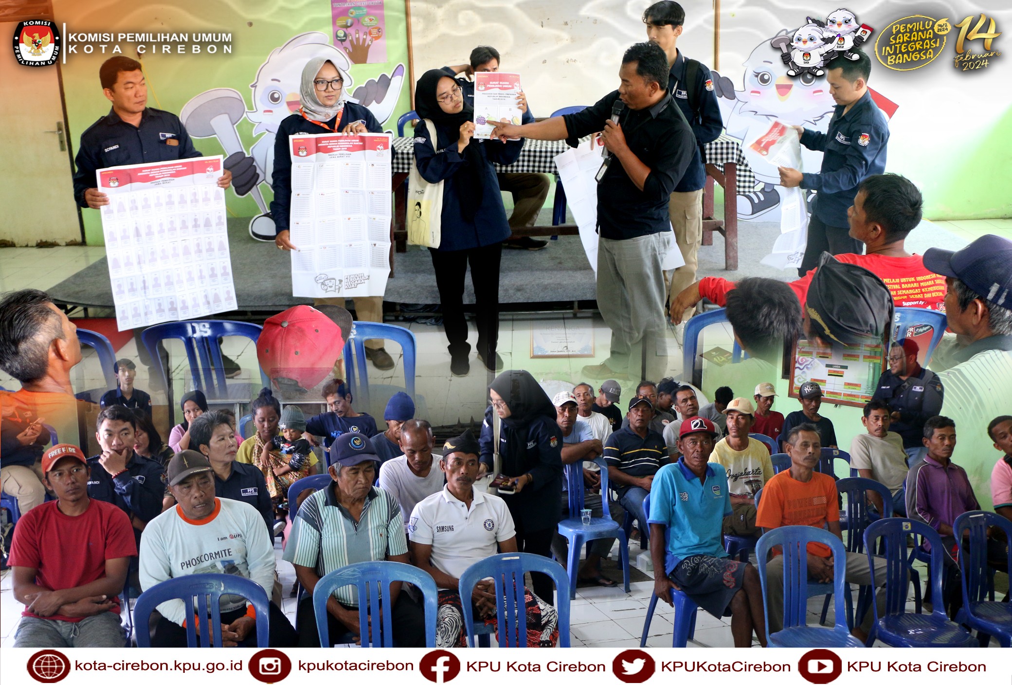 Rombongan Kirab Pemilu Tahun 2024 bersiap pukul 12.00 WIB di Kantor KPU Kota Cirebon. Selanjutnya setelah briefing, pada pukul 12.10 WIB rombongan Kirab Pemilu Tahun 2024 berangkat menuju Gedung Liposos yang berdekatan dengan pantai, dengan sasaran sosialisasi para nelayan. Dalam perjalanan menuju lokasi sosialisasi yang pertama, rombongan mobil Kirab Bendera Partai Politik melakukan orasi/woro-woro melalui pengeras suara, menyampaikan informasi tentang pelaksanaan Tahapan Pemilu Tahun 2024. Rombongan tiba pukul 13.15 WIB, dan langsung masuk ke gedung tempat kegiatan dimana para nelayan sudah menunggu di dalam gedung. Kegiatan dibuka oleh Ketua PPK Lemahwungkuk dan selanjutnya sambutan dari Anggota KPU Divisi Sosdiklih Parmas dan SDM sekaligus langsung memberikan materi sosialisasi kepada para nelayan. Sama halnya dengan kegiatan sebelumnya, pada kesempatan ini KPU Kota Cirebon juga membagikan kalender Pemilu 2024, brosur/flyer berisi informasi tentang tanggal pemungutan suara, jumlah DPT, Daerah Pemilihan, gambar dan nomor urut Partai Politik, doorprize berupa boneka mini maskot Pemilu 2024 kepada peserta yang hadir. Pada kegiatan ini tim kirab KPU Kota Cirebon melakukan simulasi pencoblosan menggunakan surat suara dummy dengan melibatkan para nelayan berperan sebagai pemilih. Kegiatan ditutup dengan foto bersama.