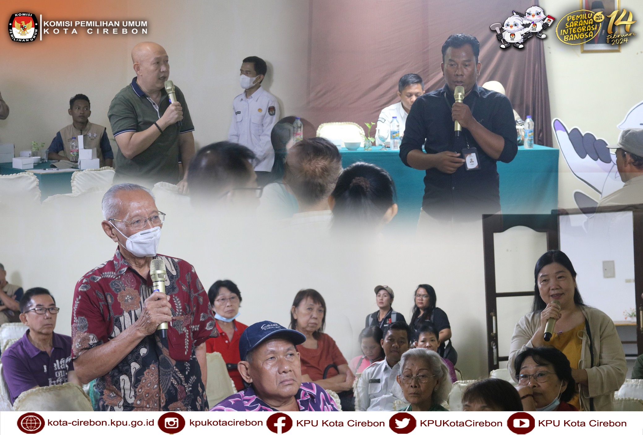 Rombongan Kirab Pemilu Tahun 2024 bersiap pukul 17.00 WIB menuju Hotel Intan. Kali ini yang menjadi sasaran sosialisasi adalah Paguyuban Sosial Marga Tionghoa Indonesia (PSMTI) Kota Cirebon. Kegiatan dibuka oleh Ketua Paguyuban PSMTI Kota Cirebon dan dilanjutkan dengan penyampaian materi oleh Anggota KPU Divisi Sosdiklih Parmas dan SDM. Sama halnya dengan kegiatan sebelumnya, pada kesempatan ini KPU Kota Cirebon juga membagikan kalender Pemilu 2024, brosur/flyer berisi informasi tentang tanggal pemungutan suara, jumlah DPT, Daerah Pemilihan, gambar dan nomor urut Partai Politik, doorprize berupa boneka mini maskot Pemilu 2024 kepada peserta yang hadir. Pada kegiatan ini tim kirab KPU Kota Cirebon memperkenalkan lima jenis surat suara, tata cara mencoblos serta membuka layanan cek DPT online. Para peserta cukup antusias dan kegiatan ini, hal ini terlihat pada sesi tanya jawab para peserta tidak sungkan untuk mengajukan beberapa pertanyaan terkait pelaksanaan Pemilu Tahun 2024 nanti. Kegiatan berakhir pada pukul 19.30 WIB dan ditutup dengan foto bersama. Selanjutnya rombongan kirab Pemilu 2024 KPU Kota Cirebon kembali ke kantor untuk menyiapkan laporan bahan sosialisasi esok hari.