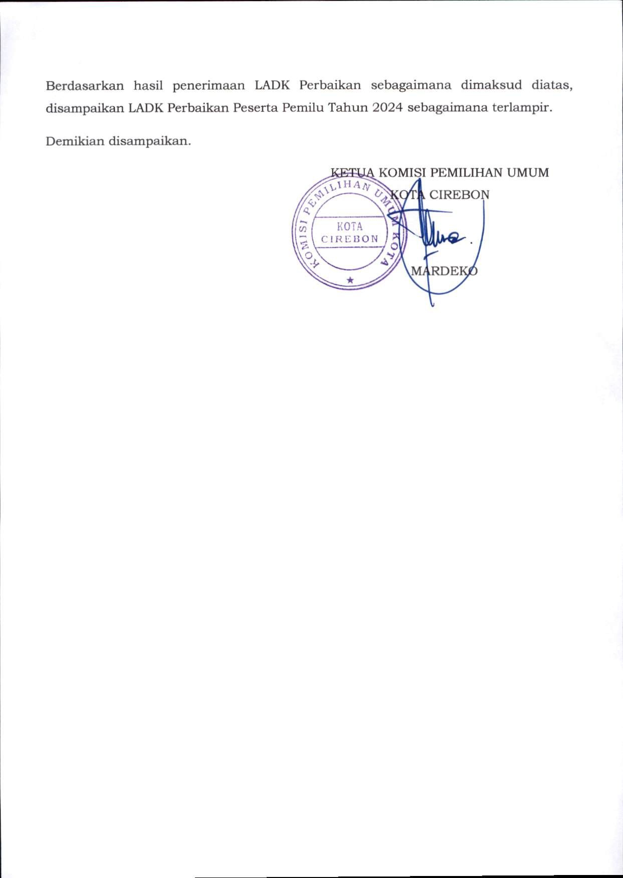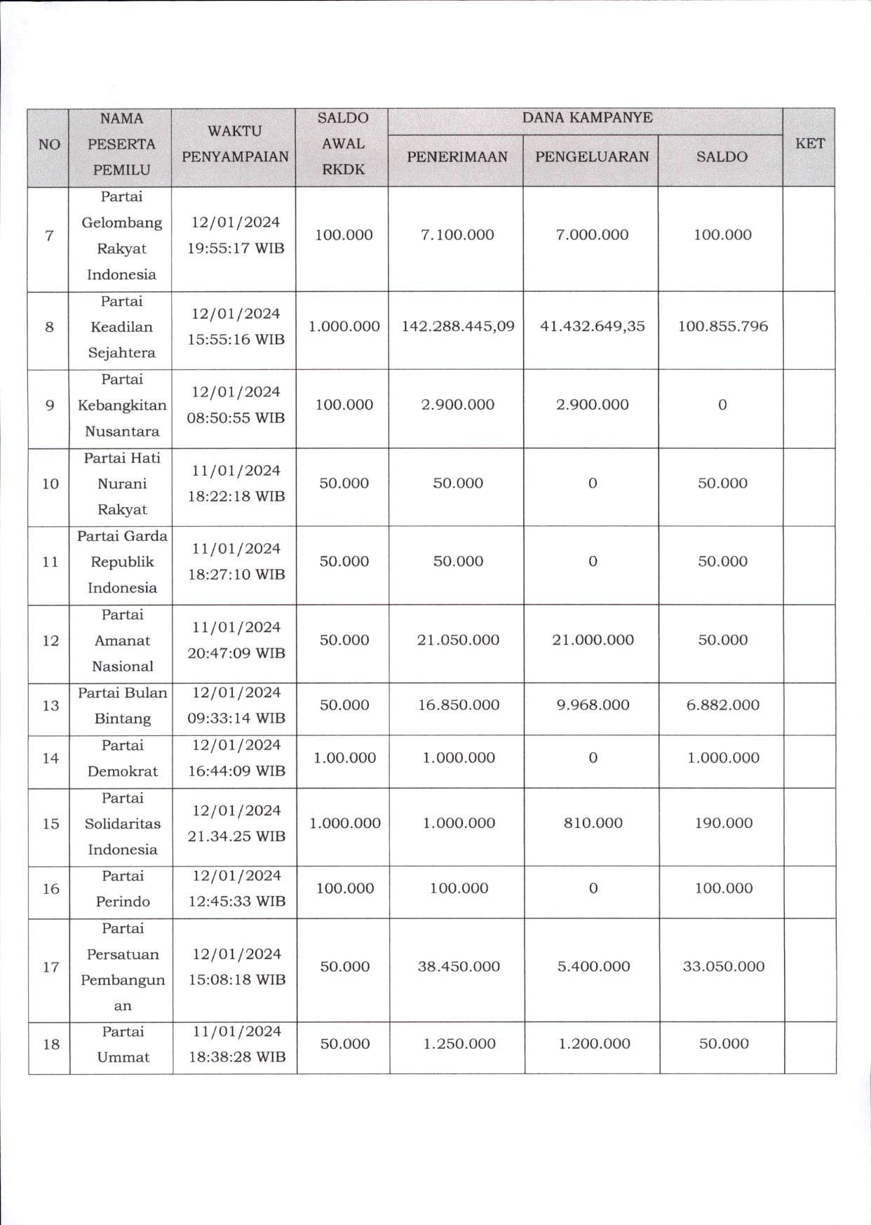 Hasil Penerimaan Laporan Awal Dana Kampanye Perbaikan Peserta Pemilihan Umum Tahun 2024