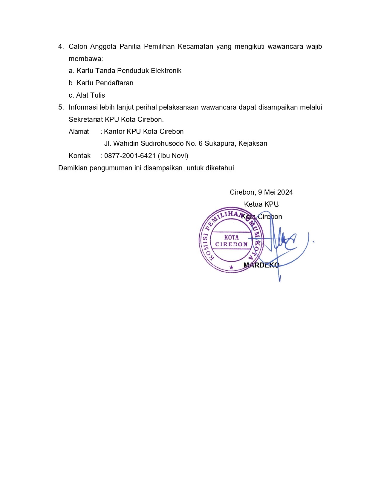 Unduh Pengumuman Hasil Seleksi Tertulis Calon Anggota PPK Pemilihan Serentak Tahun 2024