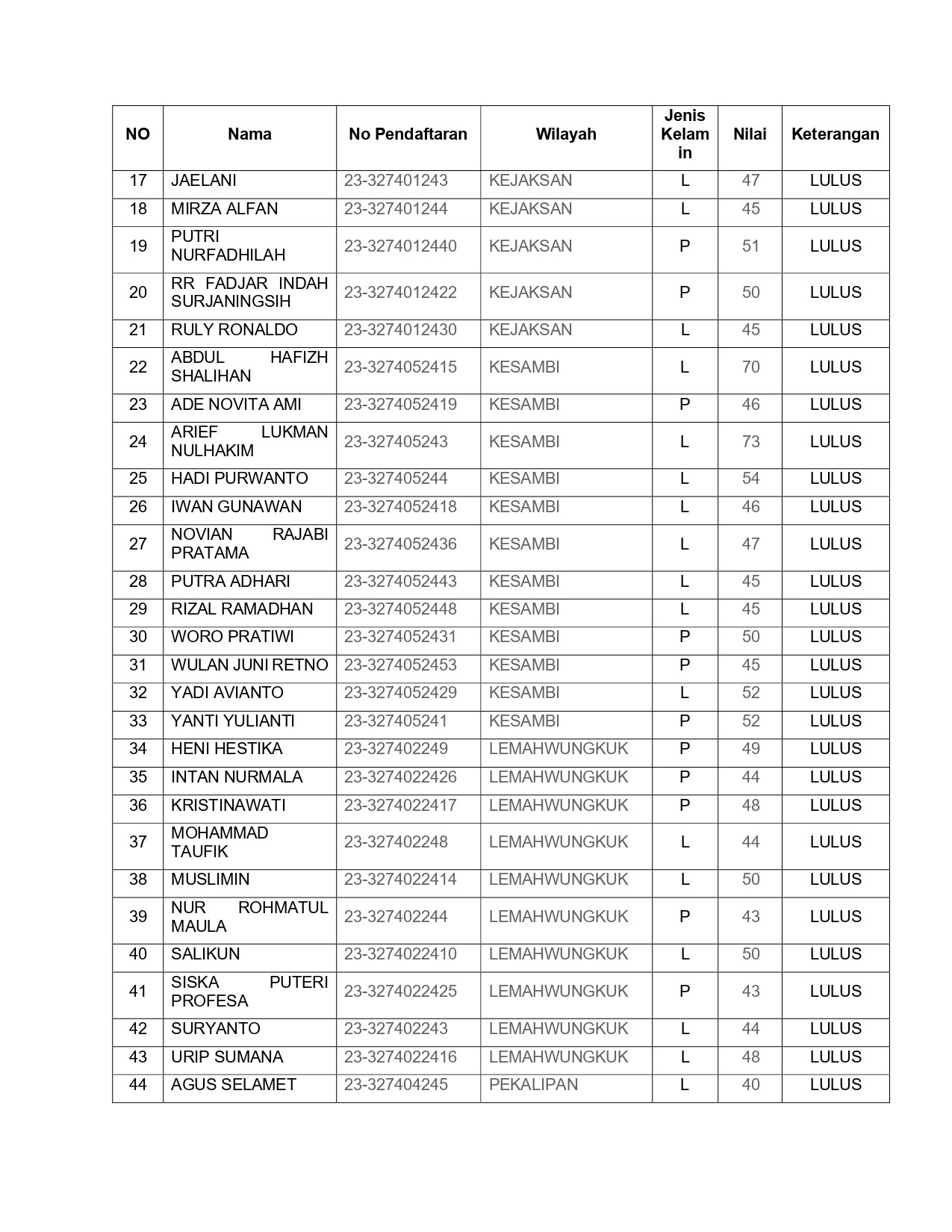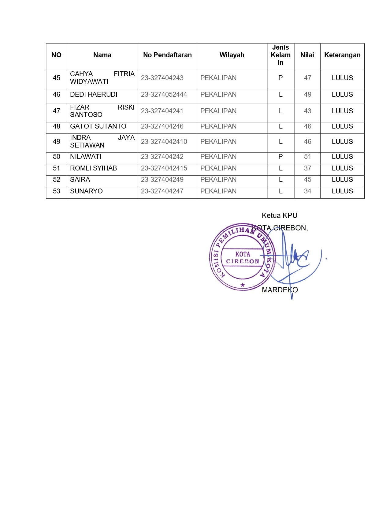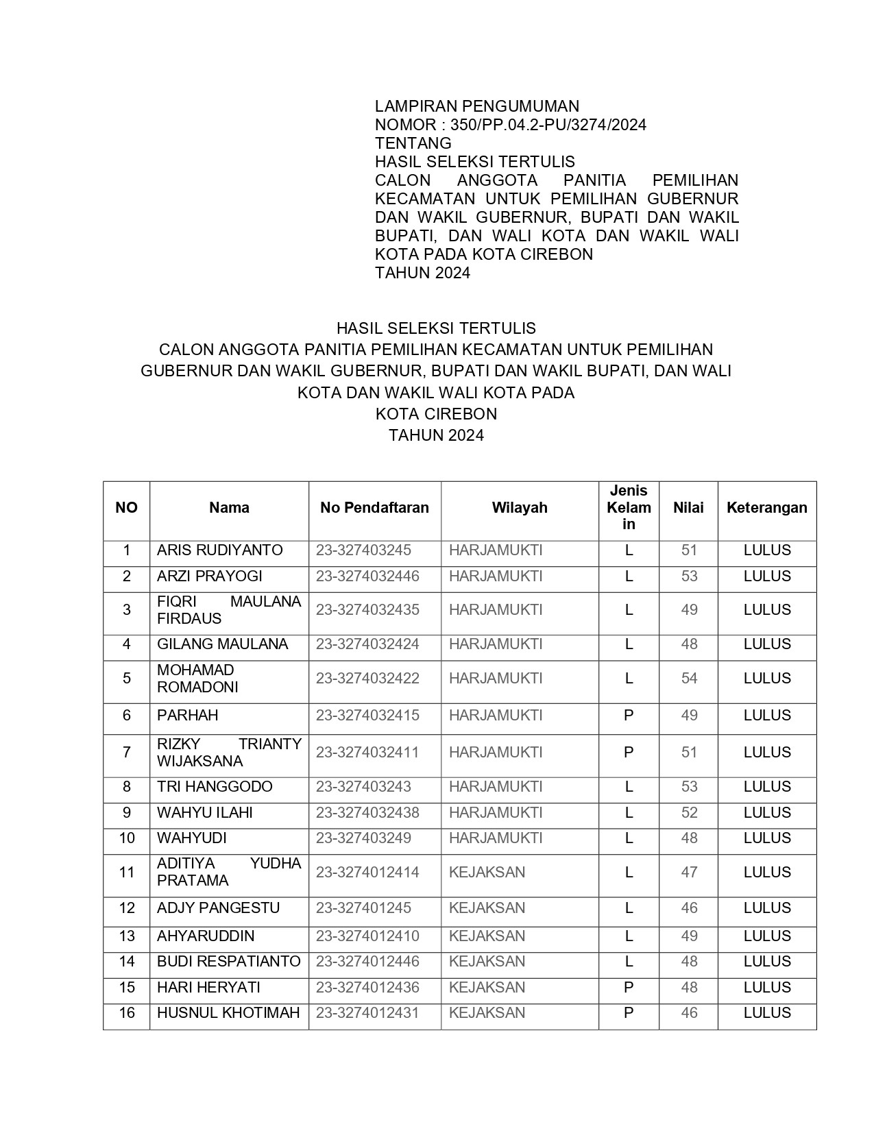 Hasil Seleksi Tertulis Calon Anggota PPK Pemilihan Serentak Tahun 2024