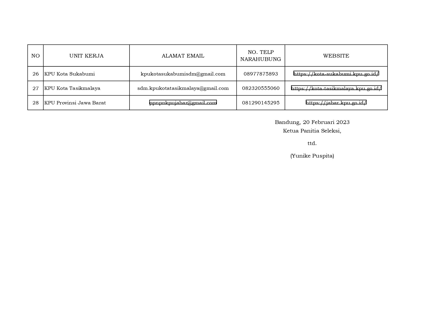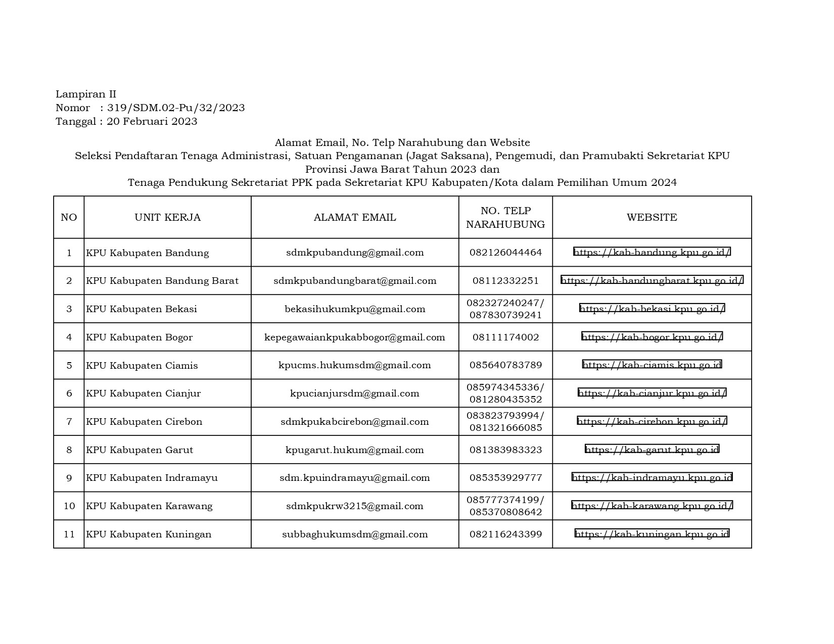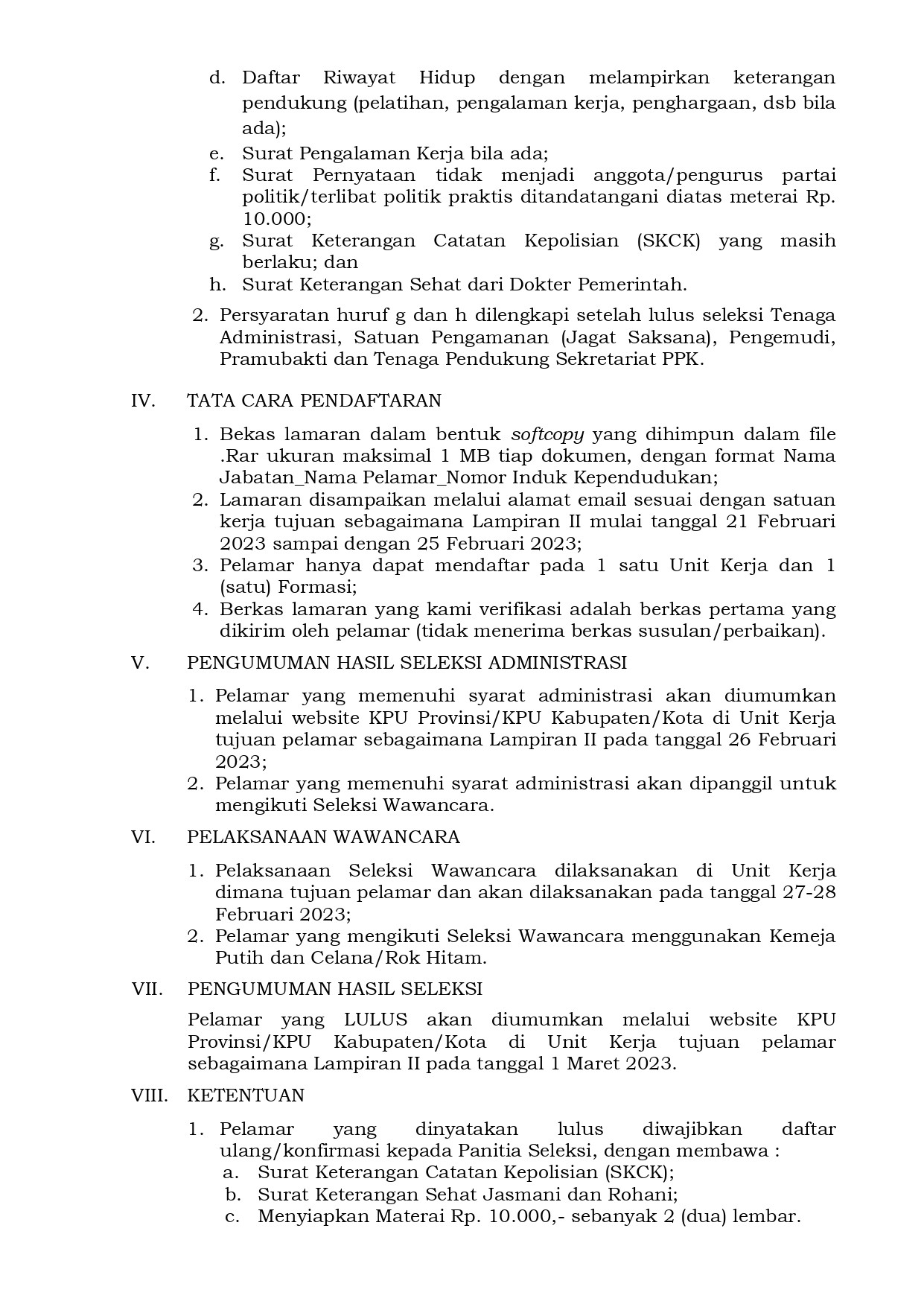 Lowongan Pendaftaran Tenaga Administrasi, Satuan Pengamanan, Pengemudi, Pramubakti, dan Tenaga Pendukung Selasa, 21 Februari 2023 07:00 506 Unduh pengumuman Bagikan: Telah dilihat 506 kali