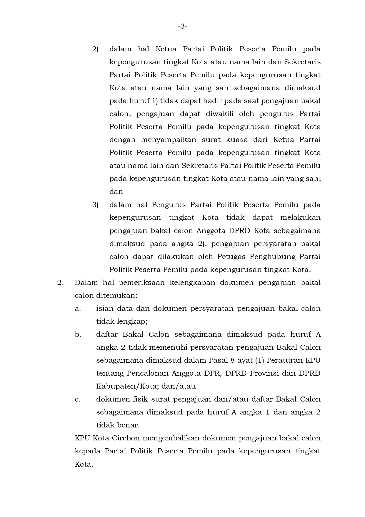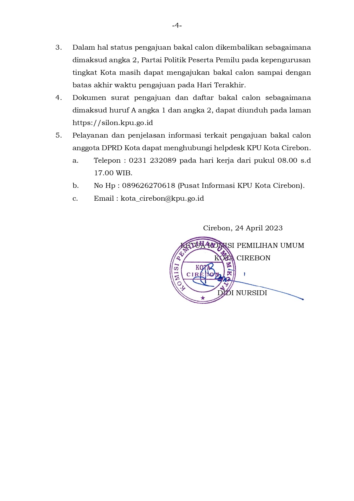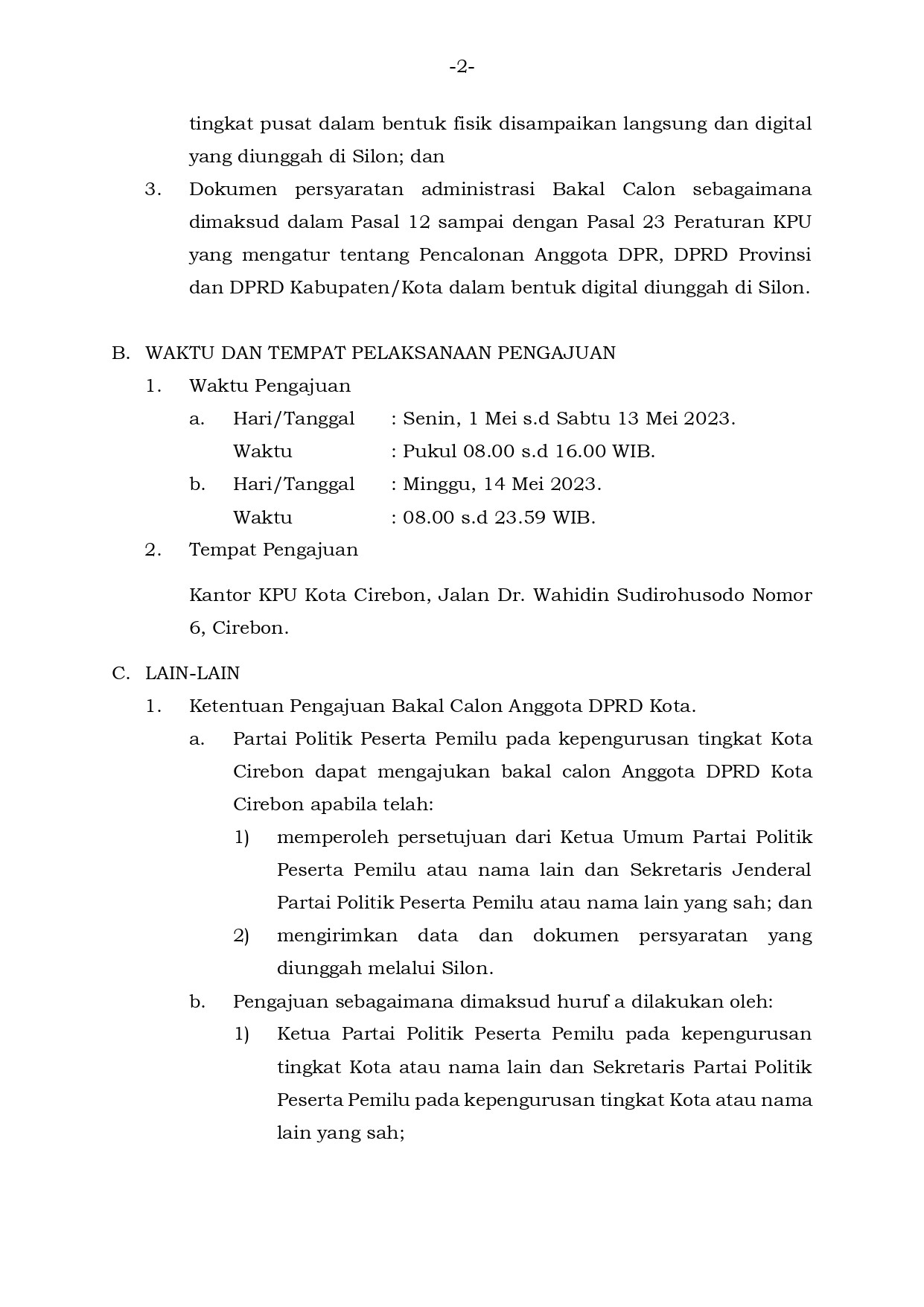 Penerimaan Pengajuan Bakal Calon Anggota DPRD Kota Cirebon untuk Pemilu Serentak Tahun 2024