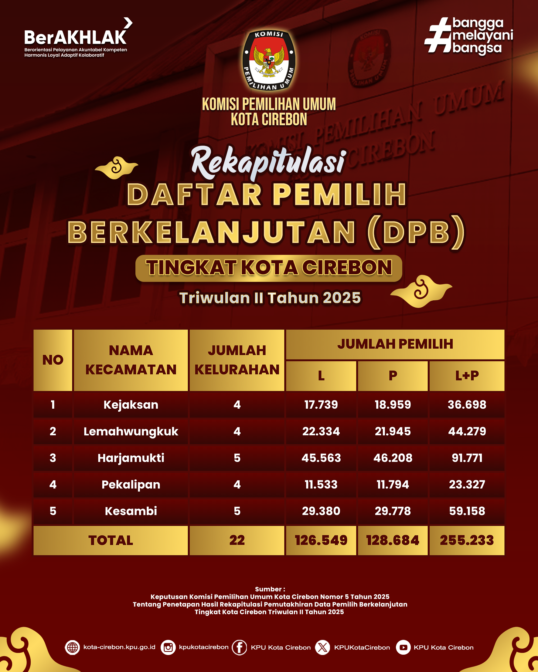 KPU Kota Cirebon melaksanakan Rapat Pleno Terbuka Daftar Pemilih Berkelanjutan Triwulan II Tahun 2025 yang di selenggarakan pada hari Rabu (02-07-2025).