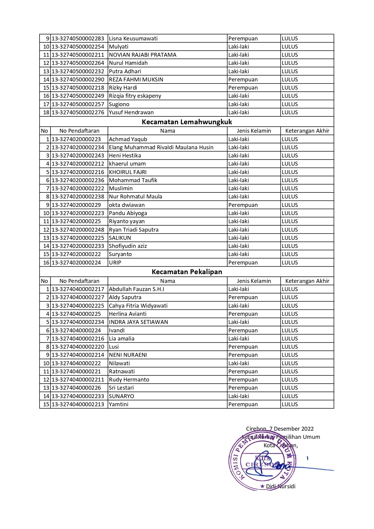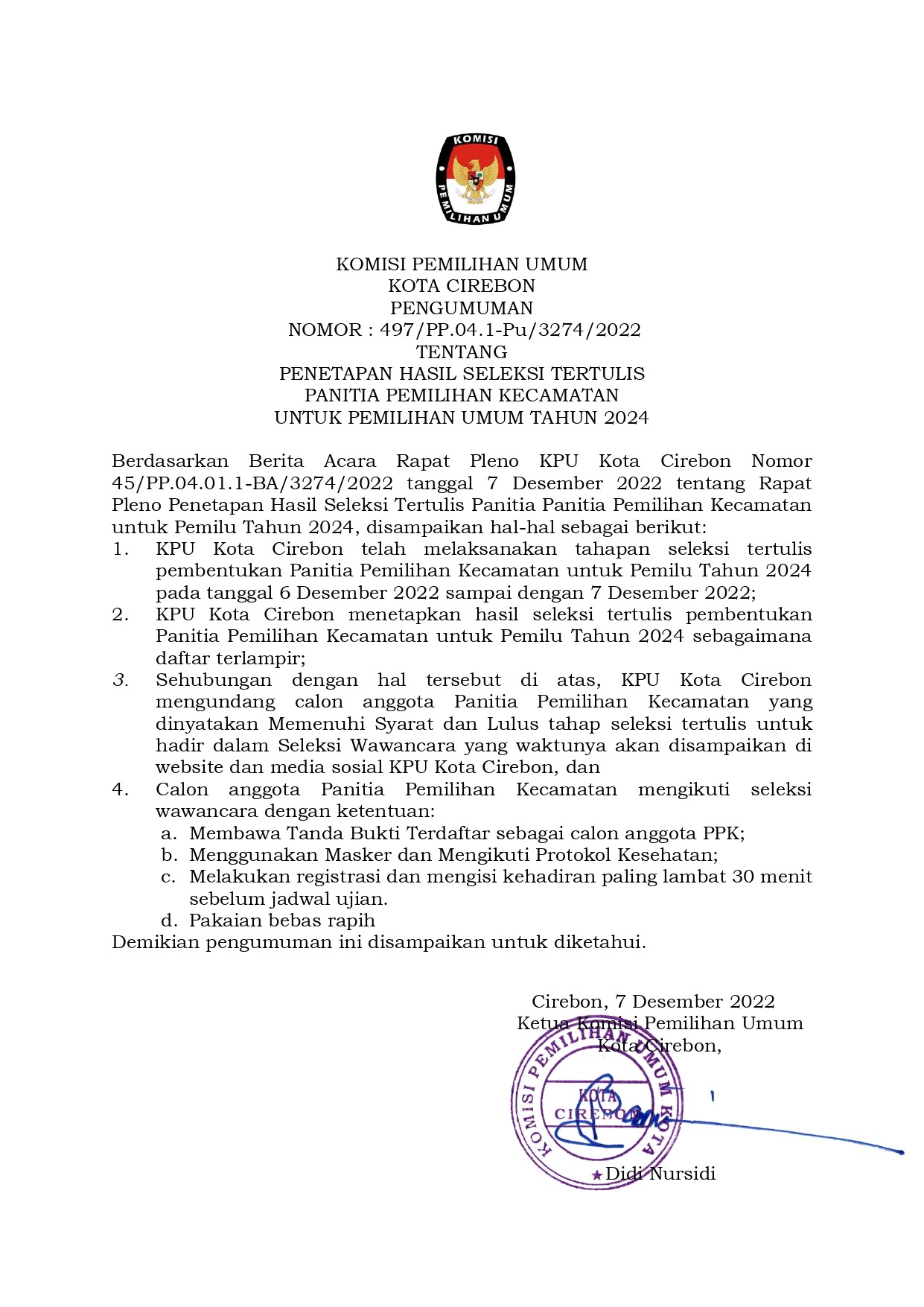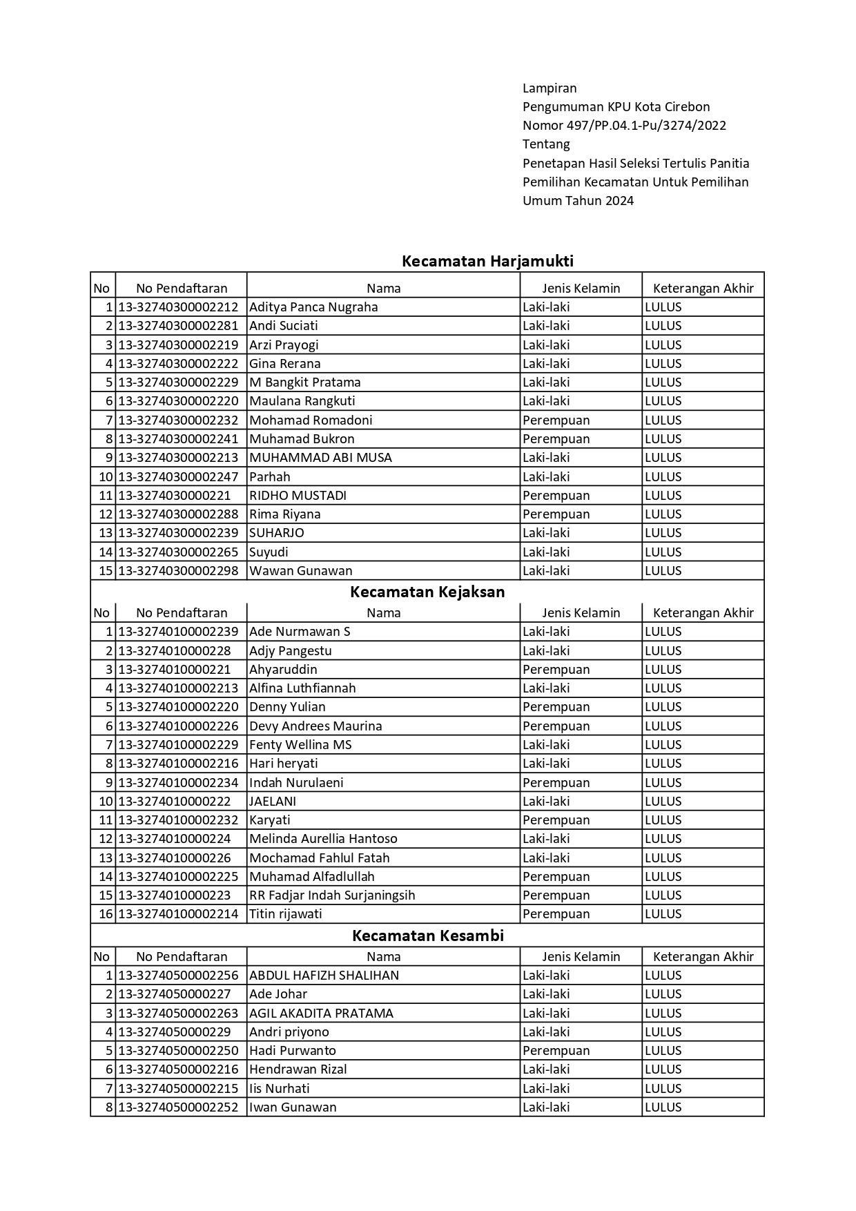Penetapan Hasil Seleksi Tertulis Panitia Pemilihan Kecamatan Pemilu Tahun 2024