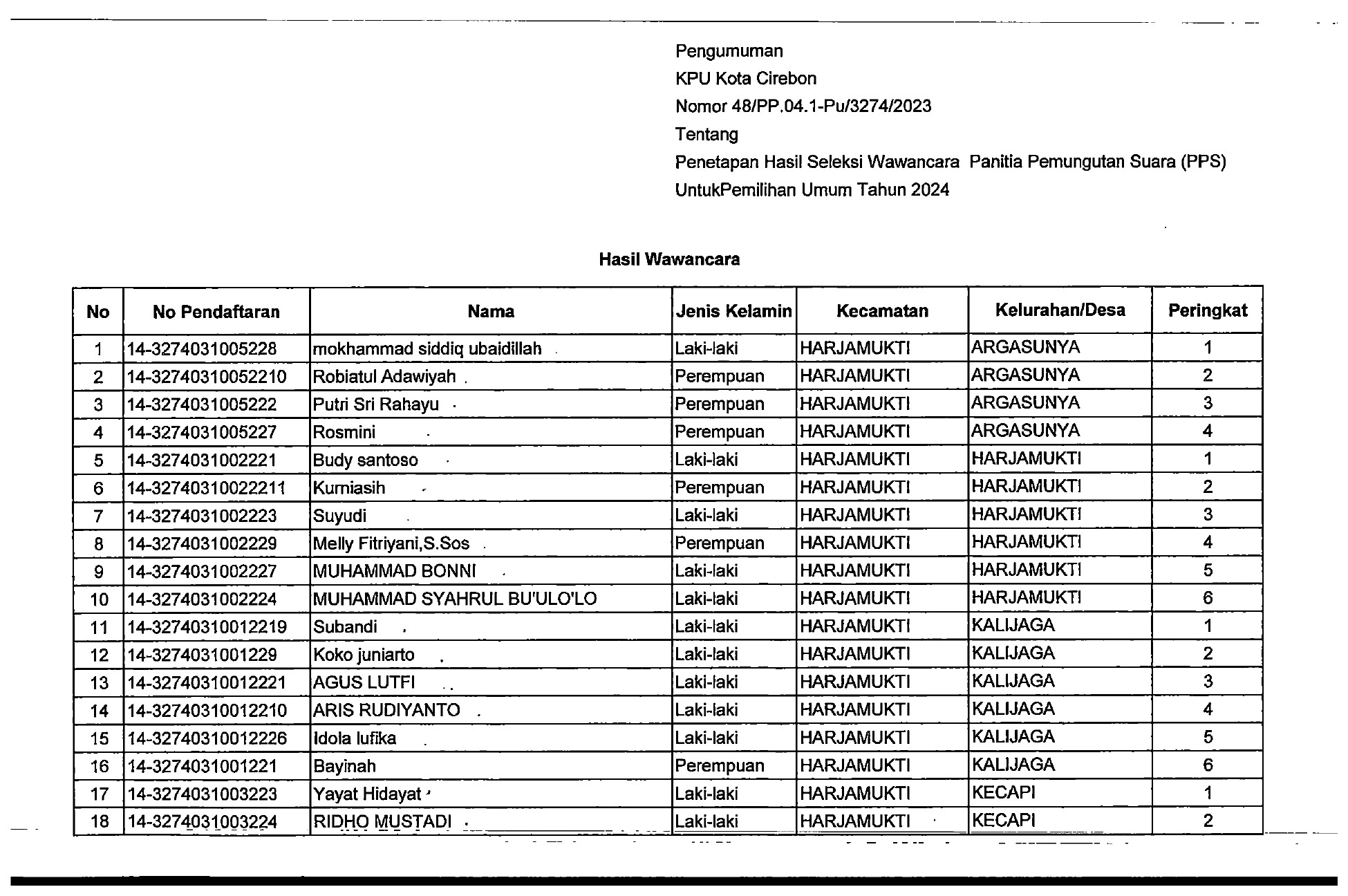 Penetapan Hasil Seleksi Wawancara Panitia Pemungutan Suara Pemilu Tahun 2024