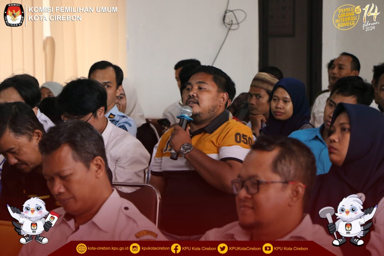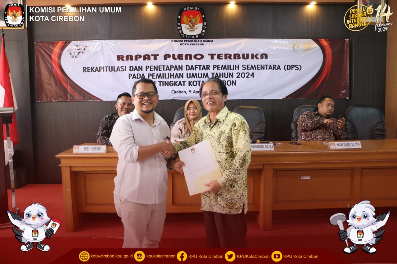 Cirebon, kota-cirebon.kpu.go.id – Komisi Pemilihan Umum Kota Cirebon melaksanakan Rapat Pleno Terbuka Rekapitulasi dan Penetapan Daftar Pemilih Sementara pada Pemilihan Umum Tahun 2024 di Aula KPU Kota Cirebon, Rabu (5/4). Rapat ini dihadiri Ketua dan Anggota Bawaslu Kota Cirebon, Kepala Bakesbangpol Kota Cirebon, Perwakilan Instansi Terkait, Perwakilan Partai Politik, PPK dan PPS se-Kota Cirebon.