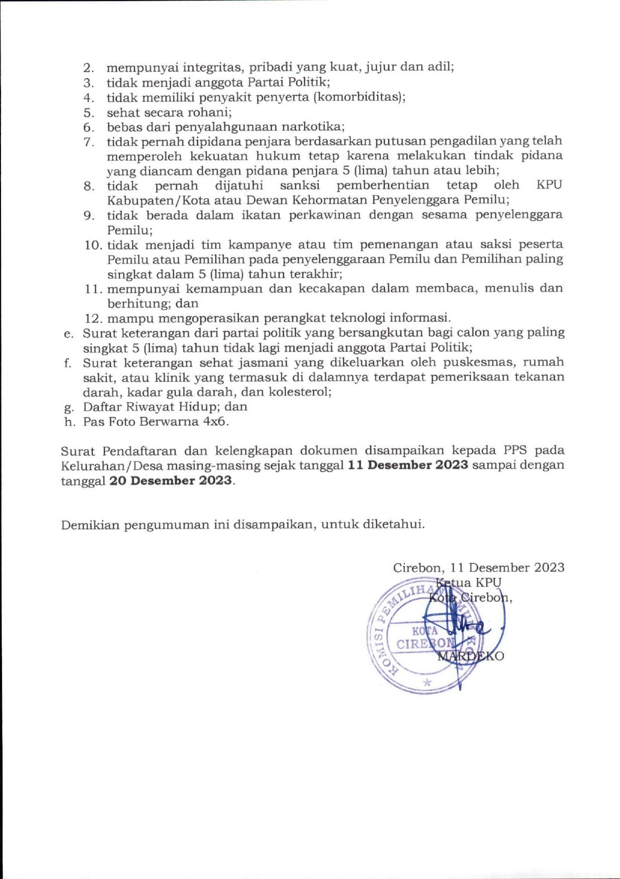 Seleksi Calon Anggota Kelompok Penyelenggara Pemungutan Suara Untuk Pemilihan Umum Tahun 2024 Senin, 11 Desember 2023 07:00 259 Unduh Pengumuman Bagikan: Telah dilihat 259 kali