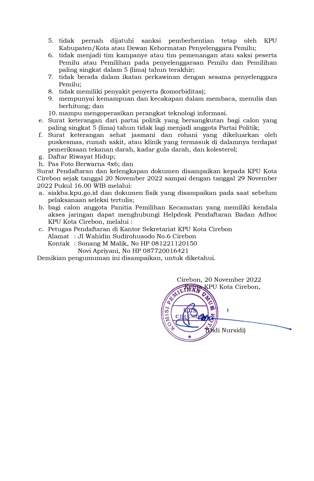 Seleksi Calon Anggota Panitia Pemilihan Kecamatan Untuk Pemilihan Umum Tahun 2024 Minggu, 20 November 2022 06:00 321 Dokumen Pendaftaran Badan Adhoc (unduh) Bagikan: Telah dilihat 321 kali