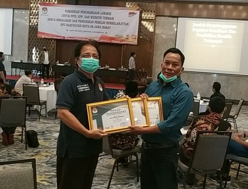 KPU Kota Cirebon yang diwakili oleh Didi Nursidi selaku Ketua, didampingi oleh Komisioner Divisi Sosialisasi, Pendidikan Pemilih dan Pertisipasi Masyarakat, Dedi Haerudi, bersyukur dan mengapresiasi KPU Provinsi Jawa Barat yang telah memberikan 3 penghargaan, sekaligus menjadikan KPU Kota Cirebon semakin termotivasi untuk meningkatkan kinerja dalam aspek pelayanan publik. (Media Center)