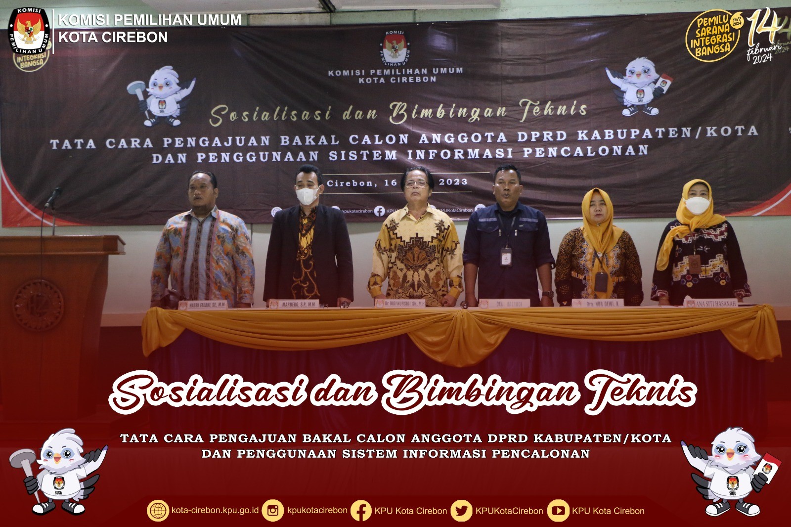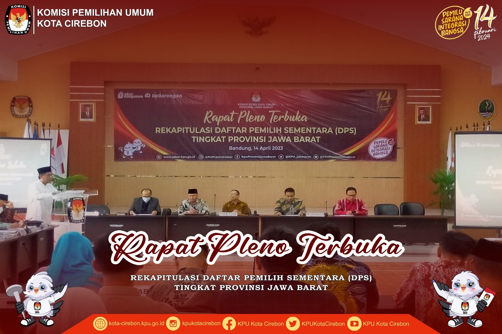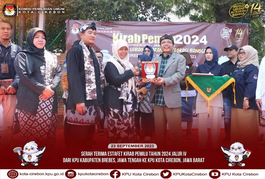Cirebon, kota-cirebon.kpu.go.id – Serah Terima Kirab Pemilu 2024 Jalur IV dari KPU Kabupaten Brebes Provinsi Jawa Tengah ke KPU Kota Cirebon Provinsi Jawa Barat dilaksanakan pada Sabtu, 23 September 2023, di Depan Balai Kota Cirebon, pukul 08.00 WIB-selesai. Kegiatan Serah Terima Bendera Kirab Pemilu 2024 dihadiri sebanyak kurang lebih 500 orang terdiri dari Forkopimda (Walikota Cirebon, Ketua DPRD Kota Cirebon, Kapolres Kota Cirebon, Dandim 0614 Kota Cirebon, Ketua Pengadilan Negeri Kota Cirebon, Kepala Kejaksaan Negeri Kota Cirebon), Sekretaris Daerah Kota Cirebon, Asisten Pemerintahan dan Kesejahteraan Rakyat Sekretariat Daerah Kota Cirebon, Kepala Dinas/Badan/Lembaga terkait di wilayah Kota Cirebon, Bawaslu Kota Cirebon, Ketua, Anggota, dan Sekretaris di 26 KPU Kabupaten/Kota se-Jawa Barat, 18 Partai Politik se-Kota Cirebon, Badan Adhoc (PPK dan PPS) Kecamatan Harjamukti, Pekalipan, Kesambi, Lemahwungkuk dan Kejaksan, Pelajar dan Mahasiswa, Komunitas CIVOC (Cirebon Volkswagen Club), Komunitas Suzuki Katana Indonesia Cirebon, Komunitas RAT SCOOTER Cirebon. Rangkaian kegiatan acara Serah Terima Kirab diawali dengan Rombongan Kirab Pemilu dari KPU Kabupaten Brebes tiba di depan Balai Kota disambut dengan prosesi pengalungan selendang khas Kota Cirebon, tarian penyambutan Kirab Pemilu oleh Penari Topeng khas Cirebon, Menyanyikan lagu Indonesia Raya, Mendengarkan Jingle Pemilu 2024, Pembacaan Do’a, Sambutan-sambutan, Pembacaan Deklarasi Pemilu Sebagai Sarana Integrasi Bangsa, Prosesi Penyerahan Bendera Kirab Pemilu Tahun 2024, Penandatanganan Berita Acara Serah Terima Pataka Kirab Pemilu Tahun 2024, Penutup dan Sesi foto bersama. Pelepasan Kirab Pemilu 2024 oleh Anggota KPU Provinsi Jawa Barat sebagai awal dimulainya serangkaian kegiatan Sosialisasi Kirab Pemilu di Kota Cirebon. Adapun iring-iringan kirab dilaksanakan dengan mengambil rute mengelilingi Kota Cirebon yang dimulai dari depan Balai Kota Kota Cirebon dan berakhir di Kantor KPU Kota Cirebon. Untuk rangkaian kendaraan kirab bendera terdiri Mobil Patwal, diikuti Pasukan Paskibraka, Drumband, Mobil ikonic Citros yang dinaiki Komisioner KPU, Mobil Bendera Kirab yang didampingi Jagat Saksana, Mobil ikonic Citros yang dinaiki Pemilih Pemula, Mobil pembawa talent atraksi barongsai, diikuti oleh rombongan komunitas mobil, rombongan mobil Partai Politik dan diikuti rombongan PPK dan PPS. Pada saat rombongan iring-iringan Bendera Kirab sampai di Kantor KPU Kota Cirebon, disambut dengan hiburan live music yang sudah disiapkan di halaman Kantor KPU Kota Cirebon.