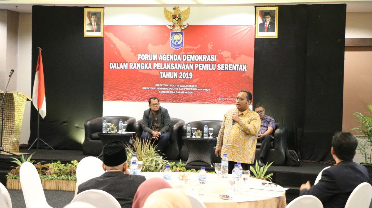 Cirebon, kota-cirebon.kpu.go.id - KPU Kota Cirebon yang diwakili oleh Anggota KPU Kota Cirebon Divisi Hukum dan Pengawasan (Hasbi Falahi), menghadiri Kegiatan Forum Agenda Demokrasi Pelaksanaan Pemilu Serentak Tahun 2019 yang diselenggarakan oleh Kementrian Dalam Negeri di Hotel Aston, Cirebon, Kamis (10/10).