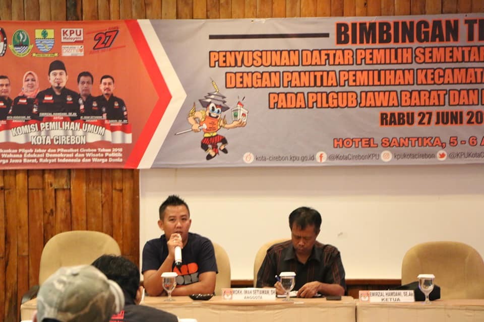 Mekanisme Penetapan Jadwal dan Lokasi Kampanye Rapat Umum Pasangan Calon Pemilihan Wali Kota dan Wakil Wali Kota Cirebon, Rabu 27 Juni 2018 disampaikan oleh Dita Hudayani, SH. (Media Center)