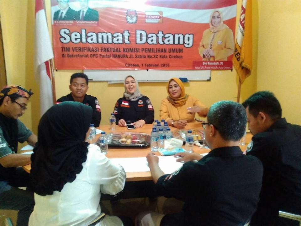 Cirebon, kota-cirebon.kpu.go.id - KPU Kota Cirebon Verifikasi Faktual Kepengurusan dan Keanggotaan di Kantor Partai Garuda, Jl. Ahmad Yani By Pass Gg. Pandawa RT 03/03 Dukuh Semar No. 514 Kec. Harjamukti, Rabu (31/1/18). Pada saat pelaksanaan verifikasi faktual kepengurusan, Parpol harus mempersiapkan beberapa hal, diantaranya Pertama, SK Kepengurusan tingkat Kota. Kedua, Kelengkapan KTP dan KTA KSB (Ketua, Sekretaris, dan Bendahara). Ketiga, Jumlah keterwakilan 30% perempuan dalam kepengurusan Parpol. Keempat, Surat keterangan domisili sekretariat Parpol. Kelima, mengambil sampel 5% dari jumlah anggota yang terdaftar. (Media Center)