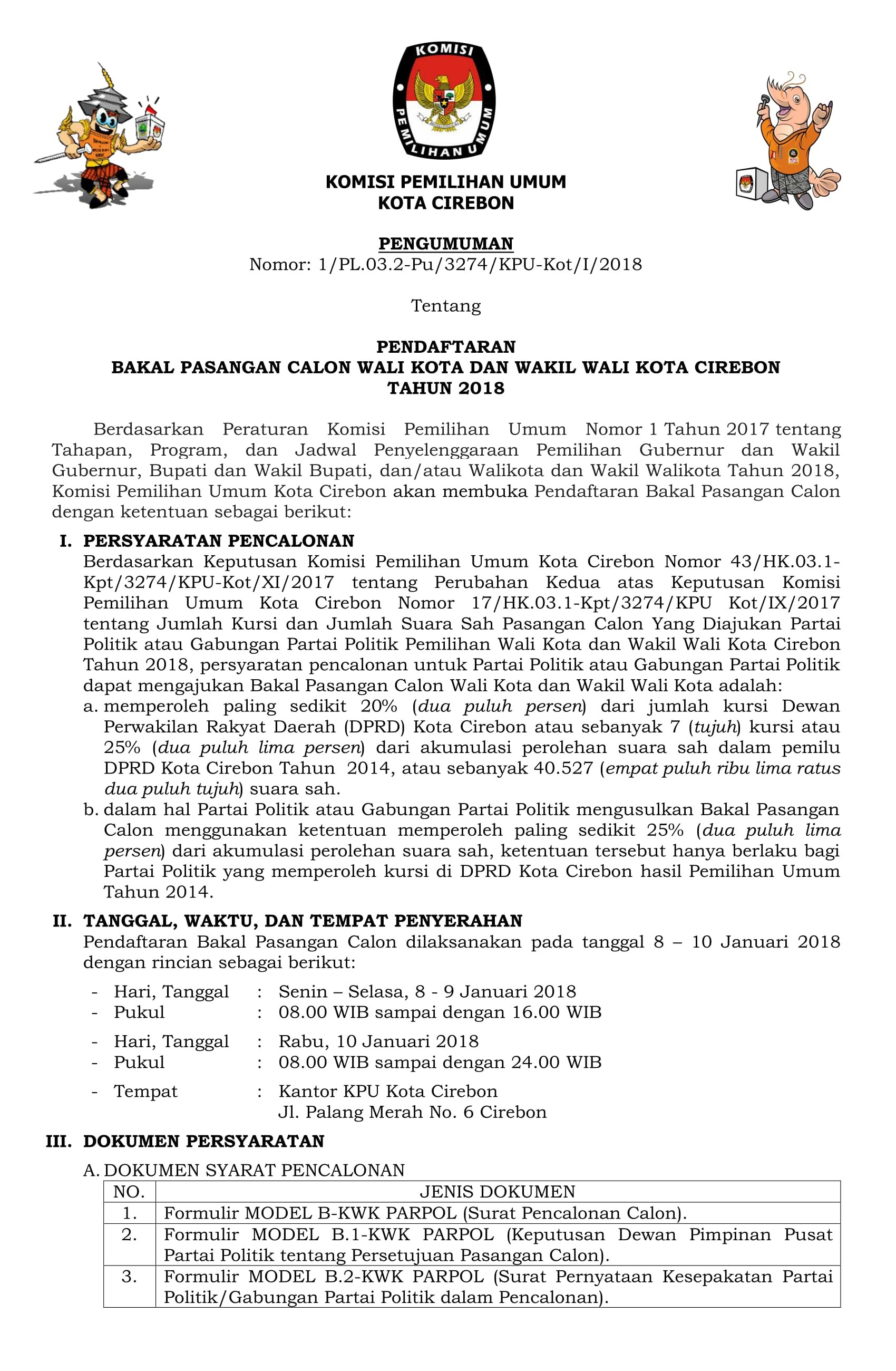 Lanjut Dita, terdapat 17 Provinsi, 154 kabupaten/kota yang mengadakan pilkada serentak Tahun 2018. “Untuk di Provinsi Jawa Barat ada 17 daerah salah satunya Kota Cirebon. Ingat, dalam membantu sosialisasi pertama yang dilakukan oleh semua pihak paling sederhana dengan memberitahukan tanggal pencoblosan pada Rabu 27 Juni 2018. Semua pihak (stakeholder) disini selain Penyelenggara, ada juga Pemerintah, Peserta Pemilihan, Masyarakat dan Media Massa. Hal tersebut termuat pada UU 10 Tahun 2016 Pasal 133A,” lanjutnya.