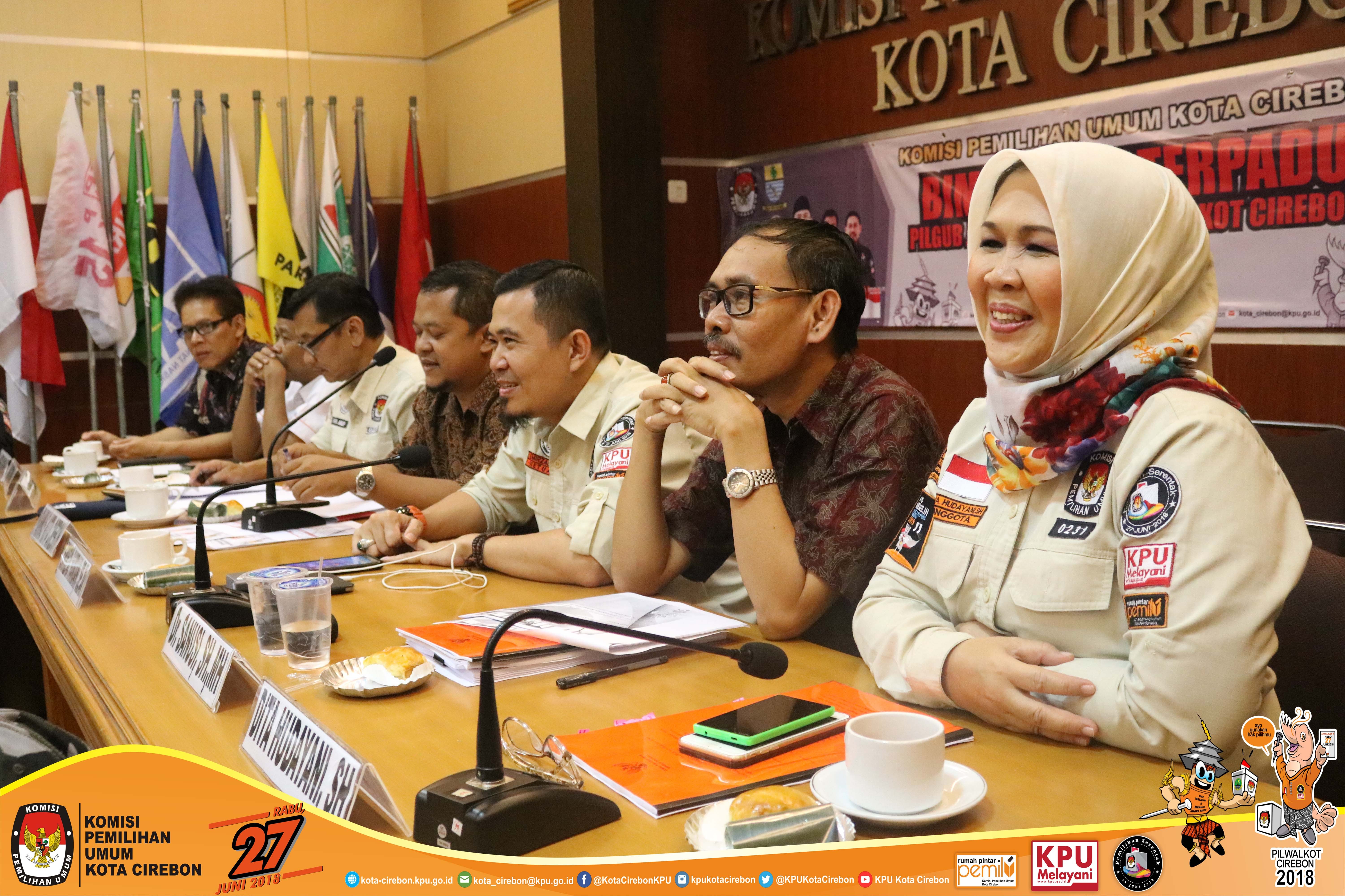 Cirebon, kota-cirebon.kpu.go.id - Komisi Pemilihan Umum (KPU) Kota Cirebon mengadakan Bimbingan Teknis (Bimtek) Panitia Pemilihan Kecamatan (PPK) Terpadu Pemilihan Gubernur dan Wakil Gubernur Jawa Barat serta Wali Kota dan Wakil Wali Kota Cirebon Tahun 2018, bertempat di Aula KPU Kota Cirebon, Jalan Palang Merah No 6, Sabtu (9/12/12). Kegiatan tersebut dibuka oleh Ketua KPU Kota Cirebon, Emirzal Hamdani, SE., Ak didampingi oleh Anggota KPU Kota Cirebon diantaranya Moh Arief, S.Sos, Dita Hudayani, SH, Dr. Sanusi, SH., MH, dan Iwan Setiawan. Turut hadir pada acara tersebut Panitia Pengawas (Panwas) Kota Cirebon, Mohamad Joharudin dan M. Beny Isnaeni. Sedangkan peserta bimtek terpadu terdiri atas 5 anggota PPK dan 2 anggota Panwascam se-Kota Cirebon. Dalam sambutannya, Emirzal menyampaikan kegiatan ini bertujuan untuk menyamakan frekuensi dalam penyelenggaraan Pilkada Serentak. “KPU Kota Cirebon dan Panwas Kota Cirebon memiliki tugas, pokok, dan fungsi yang berbeda serta tanggungjawab dalam penyelenggaraan Pilgub Jawa Barat dan Pilwalkot Cirebon Tahun 2018 berdasarkan aturan perundang-undangan yang berlaku. Namun keduanya, baik KPU Kota Cirebon beserta jajaran di bawahnya dan Panwas Kota Cirebon beserta jajaran di bawahnya memiliki tujuan yang sama untuk menyukseskan penyelenggaraan Pilkada Serentak tahun depan, Rabu 27 Juni 2018,” jelasnya. Lanjut Emirzal, peraturan perundang-undangan yang menjadi acuan oleh KPU maupun Bawaslu berkelindan dalam penyelenggaraan Pemilu atau Pilkada. “Memahami serta melaksanakan aturan dengan tepat dapat memberi kemudahan dalam menyelenggarakan Pemilu. Sedangkan Bawaslu yang mengawasi penyelenggara pemilu juga melakukan pengawasan sesuai dengan aturan,” lanjutnya. Dalam aturannya, kata Emirzal, KPU diawasi oleh kawan-kawan Bawaslu. “Kita yang hadir semua pada hari ini merupakan produk hasil Undang-Undang 15 Tahun 2011. Kita mengetahui bahwa ada 3 lembaga penyelenggara pemilu, yakni KPU, Bawaslu, dan Dewan Kehormatan Penyelenggara Pemilu atau yang biasa disebut DKPP. Selain itu, ada juga sanksi tegas bagi penyelenggara pemilu yang tercantum dalam Undang-Undang 7 Tahun 2017 serta Kode Etik dan Pedoman Penyelenggara Pemilu dalam Peraturan KPU Nomor 2 Tahun 2017. Oleh sebab itu, dengan semangat kebersamaan, kita saling menghormati dan menghargai dalam menjalankan tugas sesuai dengan aturan yang ada,” katanya. Sementara itu, sambutan dari Panwas Kota Cirebon disampaikan oleh Mohamad Joharudin. Mohamad Joharudin mengatakan Pilkada yang dicita-citakan akan menghasilkan yang terbaik dengan mengedepankan 3 sikap. “Pilkada Serentak tahun 2018 akan sesuai dengan yang dicita-citakan jika mengedepankan sikap komunikasi, kolaborasi, dan berfikir kritis. Sukses milik kita bersama,” tambahnya. Acara yang berlangsung dari pukul 09.30 WIB sampai dengan 14.00 WIB diisi dengan penyampaian materi yang disampaikan secara berurutan oleh anggota KPU Kota Cirebon yakni Sanusi, Moh. Arief, Iwan Setiawan, dan Dita Hudayani. Sedangkan dari Panwas Kota Cirebon materi disampaikan oleh Beny. Dilanjutkan dengan diskusi dan pembagian kelompok menjadi 4 kelompok peserta gabungan yang terdiri dari anggota PPK dan Panwascam. (Media Center)