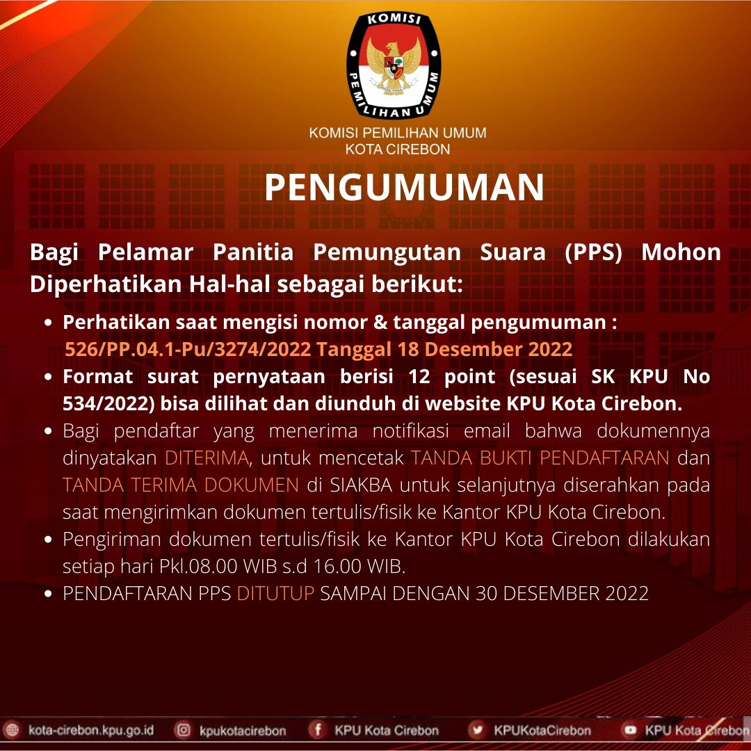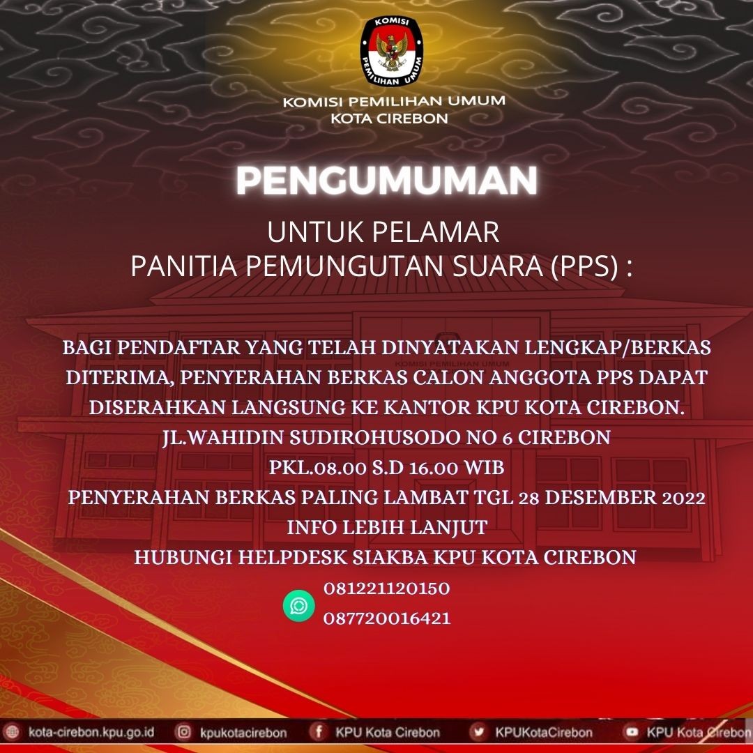 Pengumuman Bagi Pelamar Panitia Pemungutan Suara Pemilu 2024 Selasa, 20 Desember 2022 07:00 179 Pengumuman Bagi Pelamar Panitia Pemungutan Suara Baca Selengkapnya