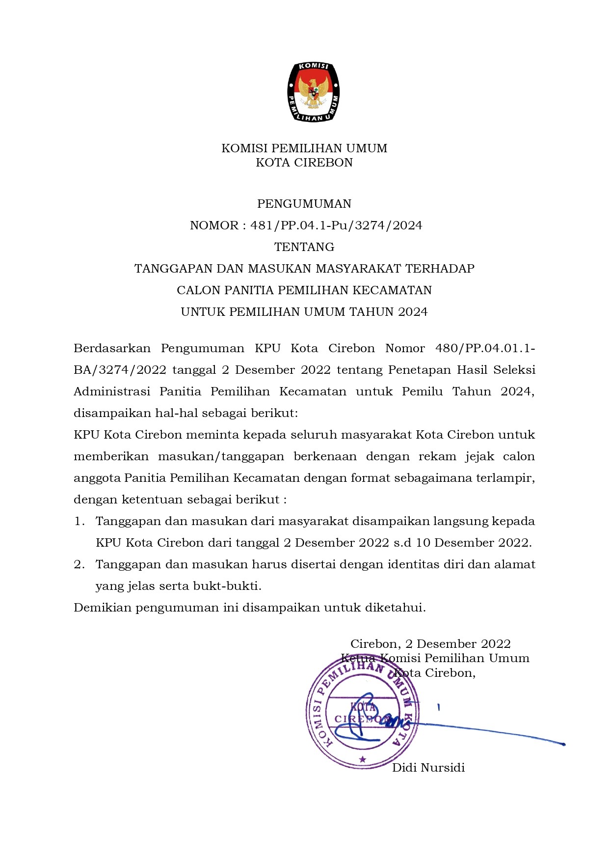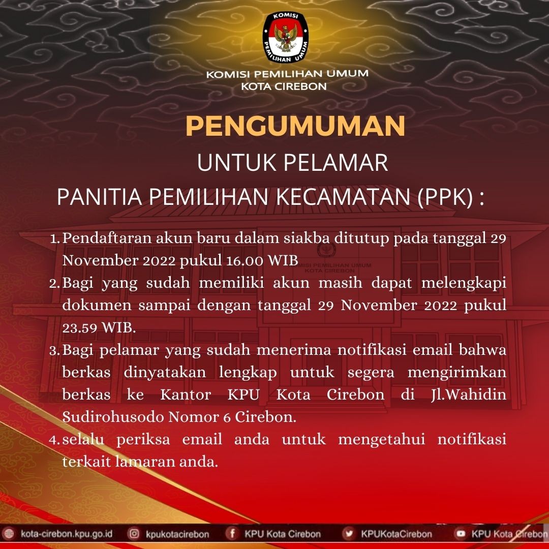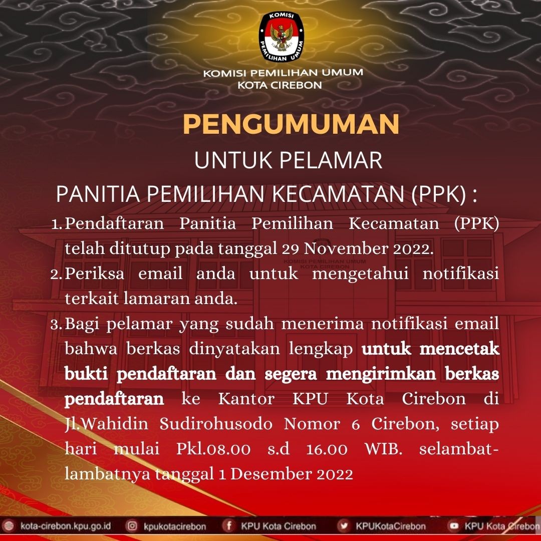 Pengumuman bagi #TemanPemilih yang sudah mengunggah berkas lamaran di siakba.kpu.go.id, agar selalu memeriksa email masuk untuk melihat pemberitahuan dari KPU. Apabila sudah mendapatkan pemberitahuan lamaran dinyatakan lengkap, agar menyerahkan berkas fisik.