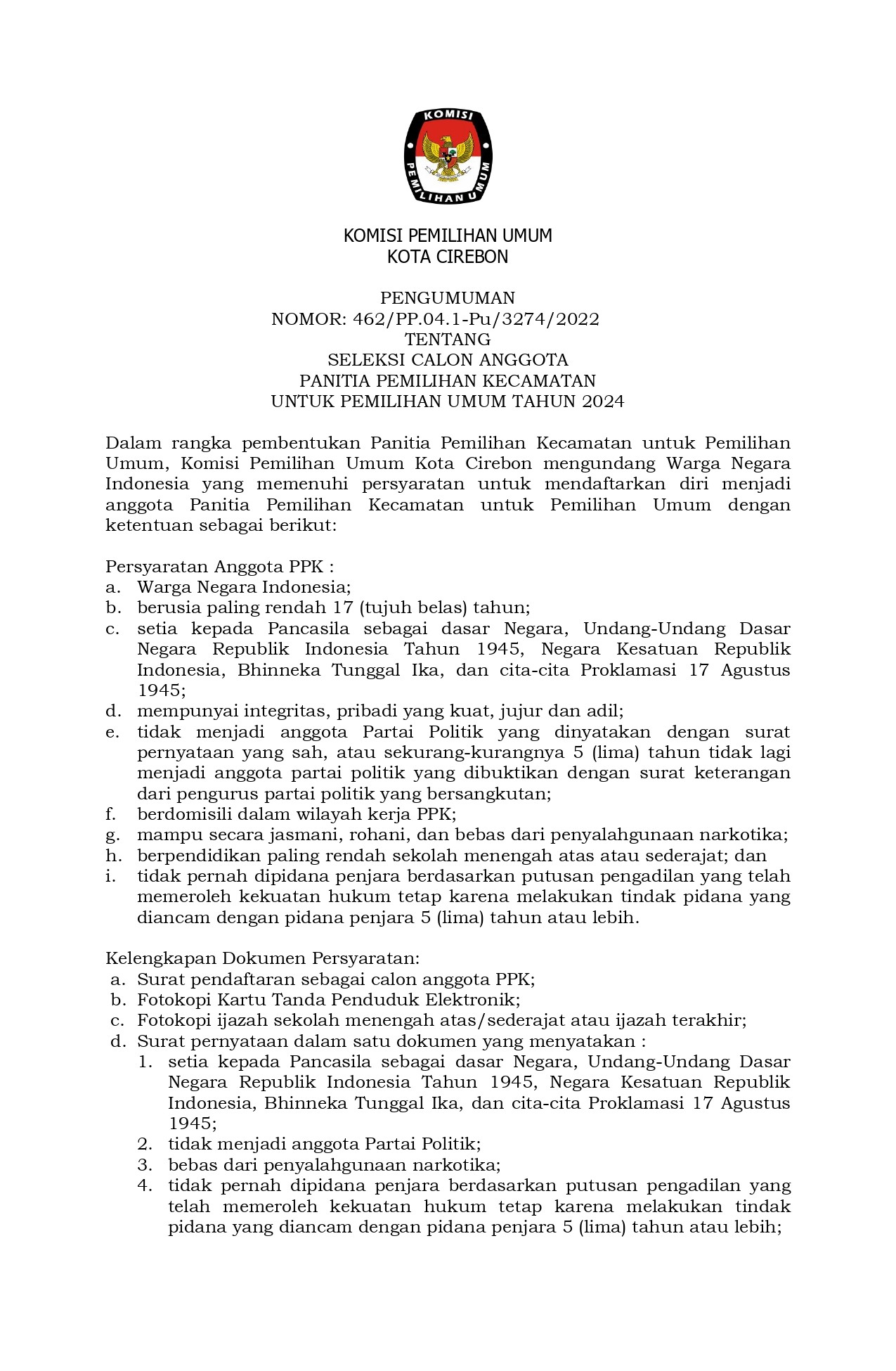 Berdasarkan seleksi administrasi yang dilaksanakan pada tanggal 30 November s.d. tanggal 13 Desember 2021, Tim Uji Kesesuaian Jabatan (Job Fit) Sekretaris Komisi Pemilihan Umum Kabupaten/Kota Tahun 2021 pada 23 Provinsi, dengan ini menetapkan sebagai berikut:
