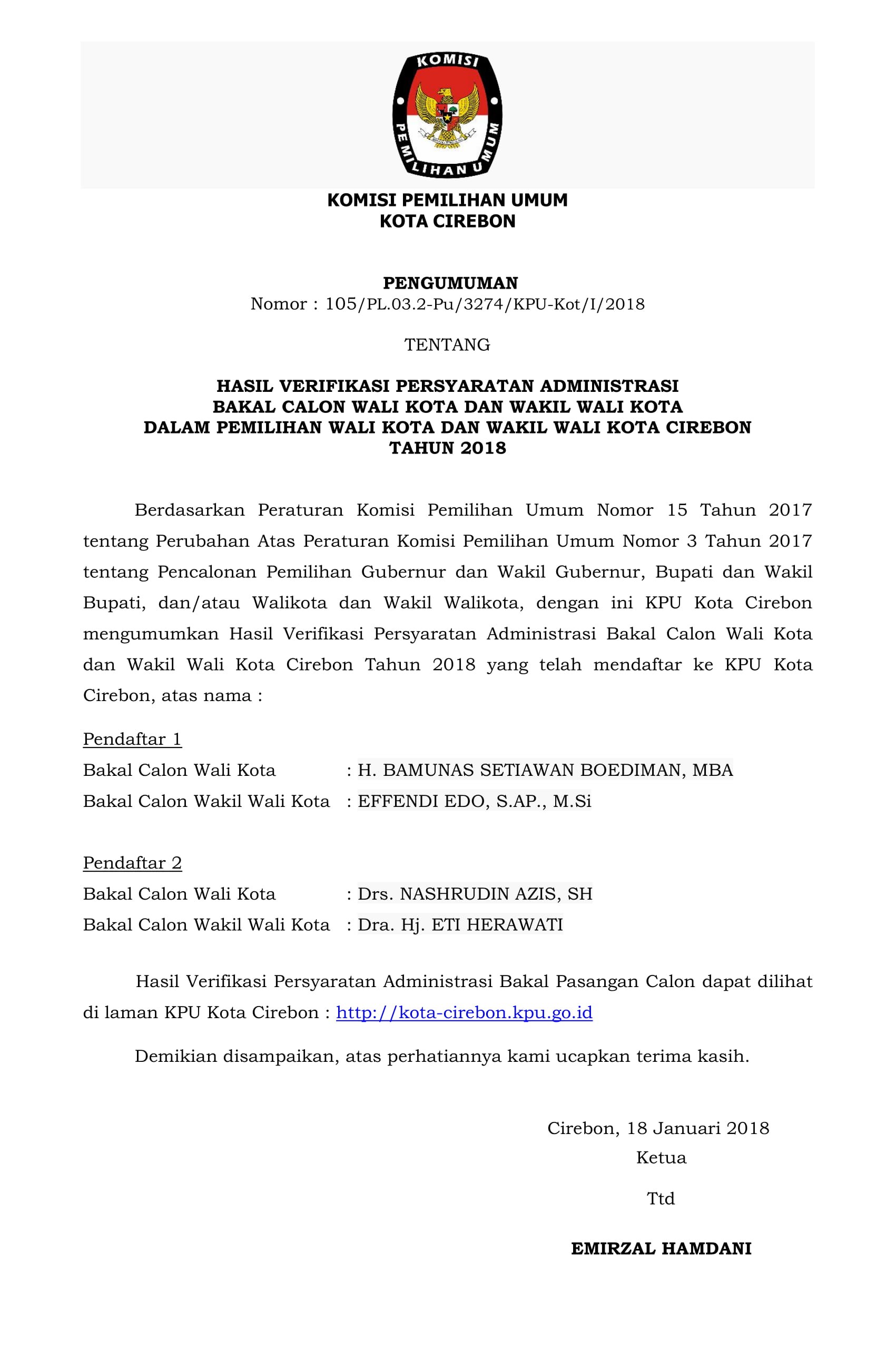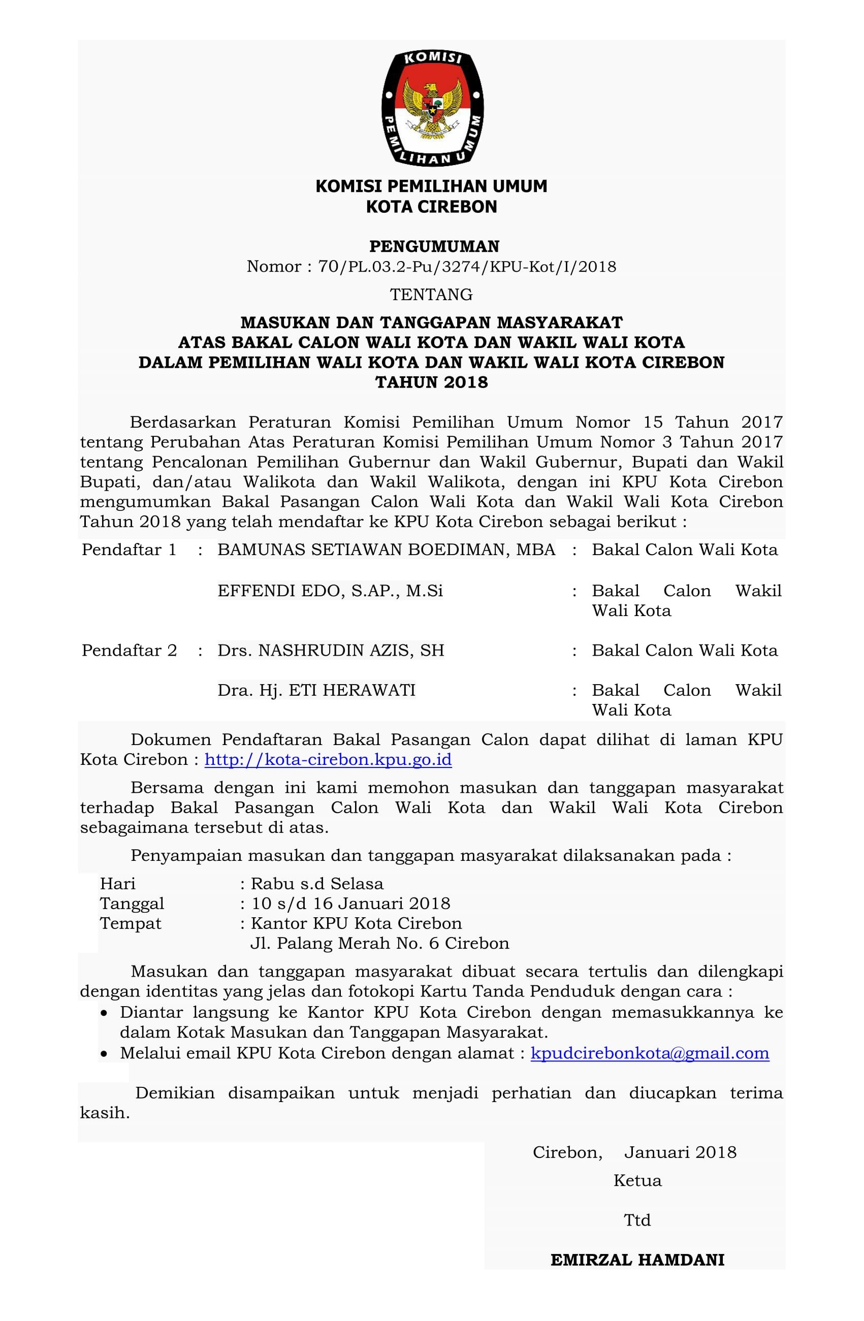 Dan Calon Anggota DPRD Kota Cirebon yang terpilih adalah sebagai berikut: