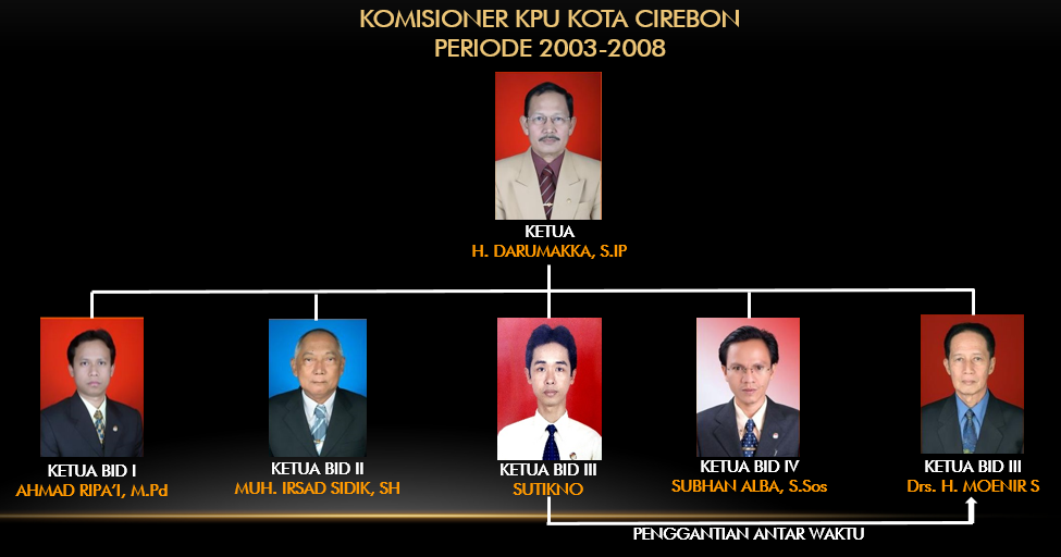 Anggota KPU Kota Cirebon Periode 2003-2008 telah berhasil melaksanakan penyelenggaraan Pemilihan Umum Anggota DPR, DPD dan DPRD Tahun 2004, Pemilihan Presiden dan Wakil Presiden Tahun 2004, Pemilihan Gubernur dan Wakil Gubernur Jawa Barat Tahun 2008 dan Pemilihan Walikota dan Wakil Walikota Cirebon Tahun 2008.