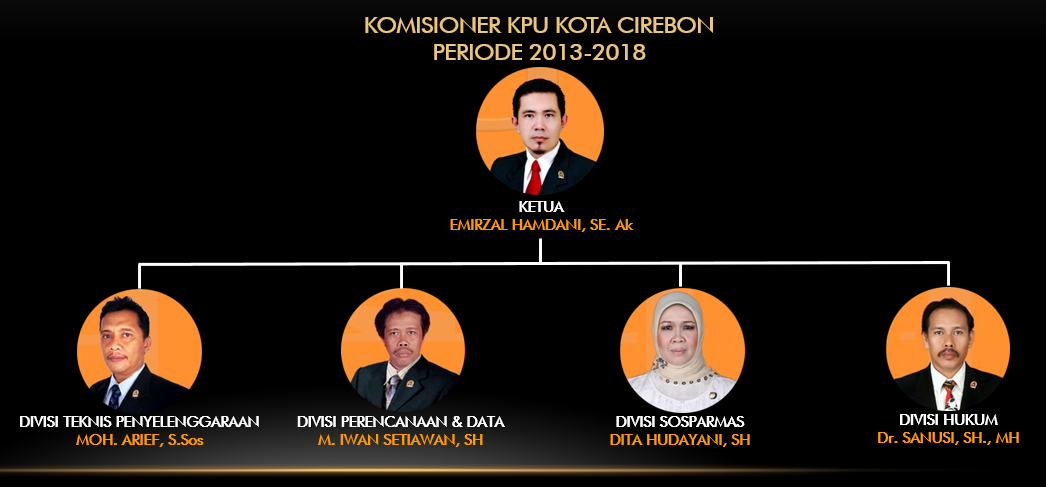 Akhirnya dari hasil proses seleksi di KPU Provinsi Jawa Barat menghasilkan 5 (lima) Anggota KPU Kota Cirebon terpilih melalui Keputusan KPU Provinsi Jawa Barat Nomor 153/Kpts/KPU-Prov-011/X/2013 tanggal 2 Oktober 2013 tentang Pemberhentian dan Pengangkatan Anggota Komisi Pemilihan Umum Kota Cirebon Periode 2013-2018 dengan susunan keanggotan sebagai berikut :